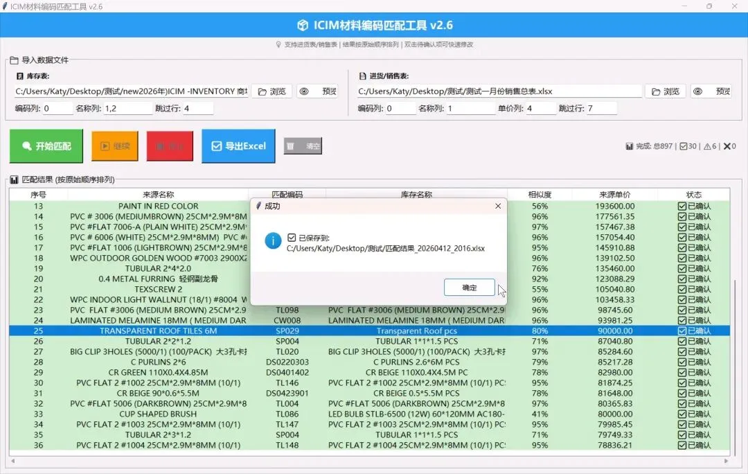 匹配结果自动保存为Excel:后续可以复制黏贴或者直接使用