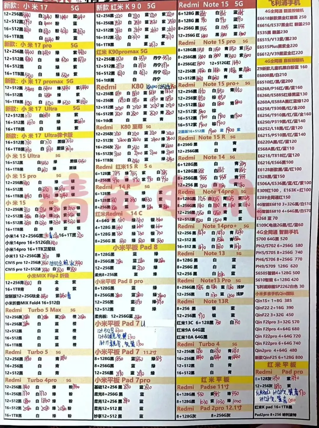 以下报价都是深圳华强北手机批发市场当天的最新批发价格(不含税),报价是我们的批发底价,零售拿货价格需加20~100元不等,京东包邮(量大价格可谈)