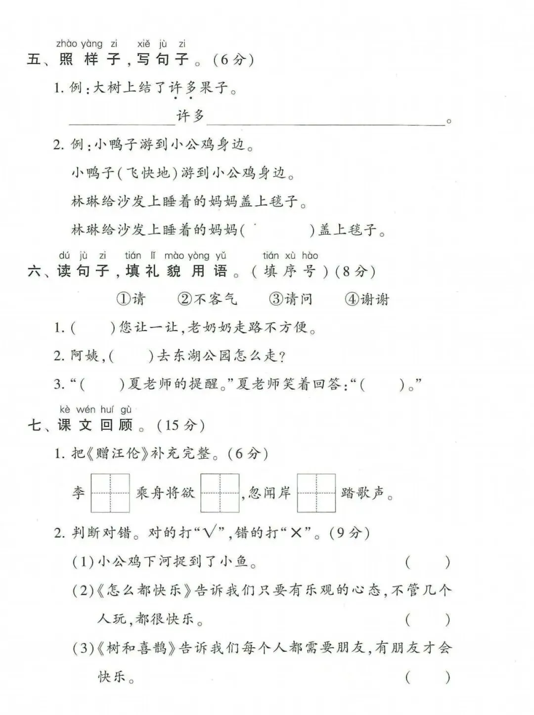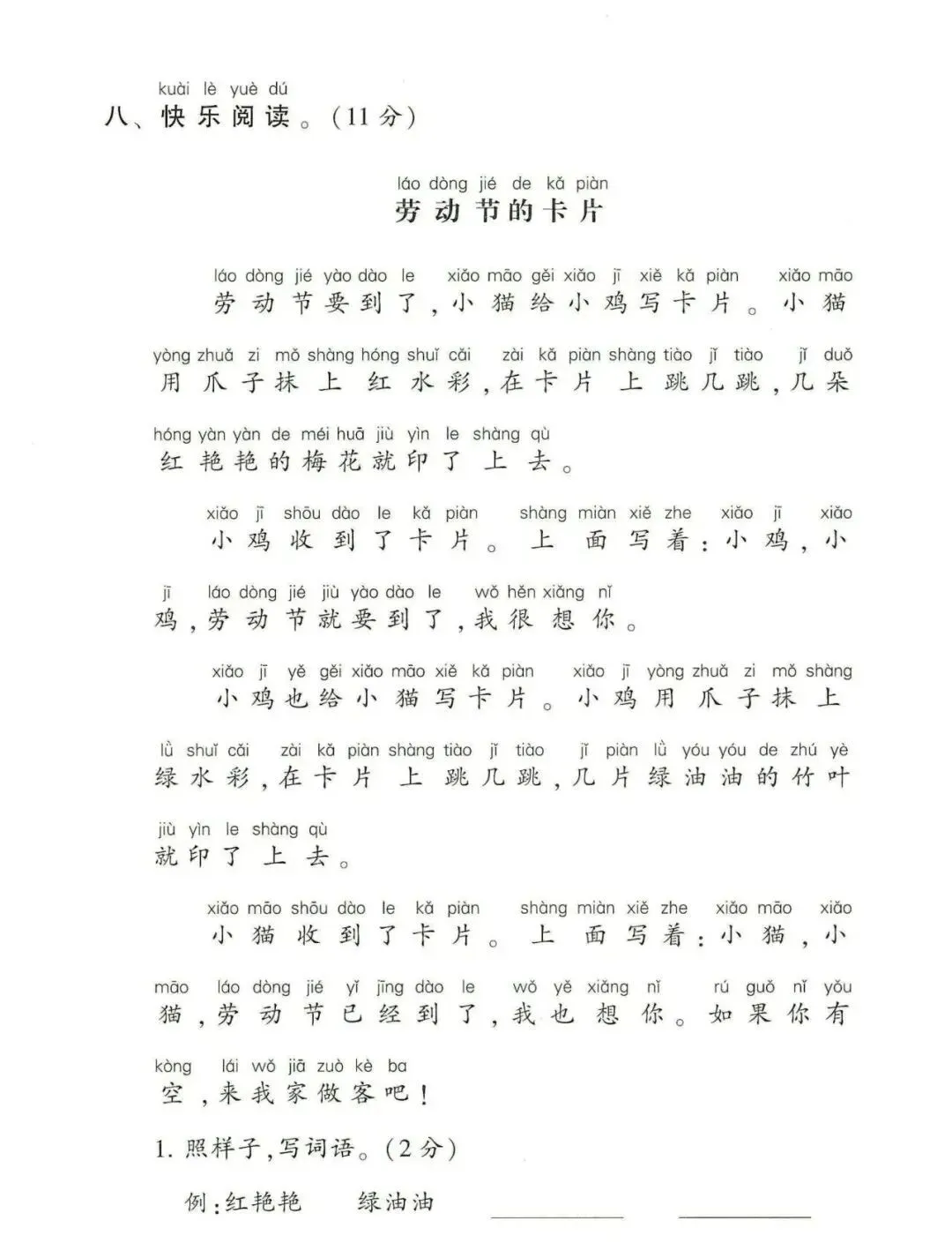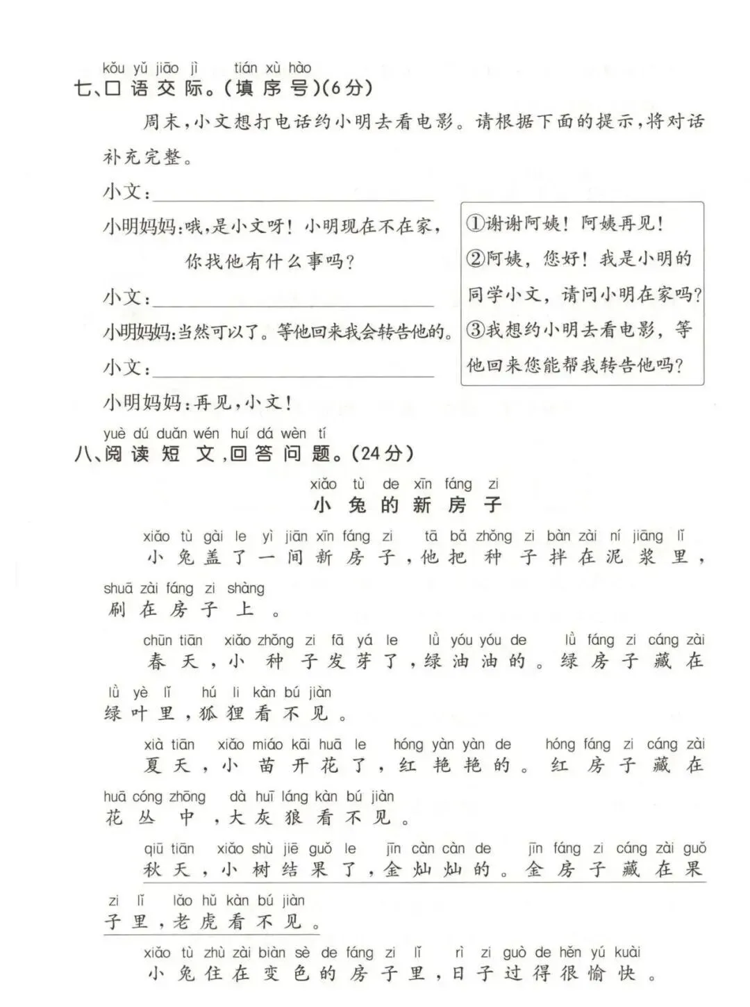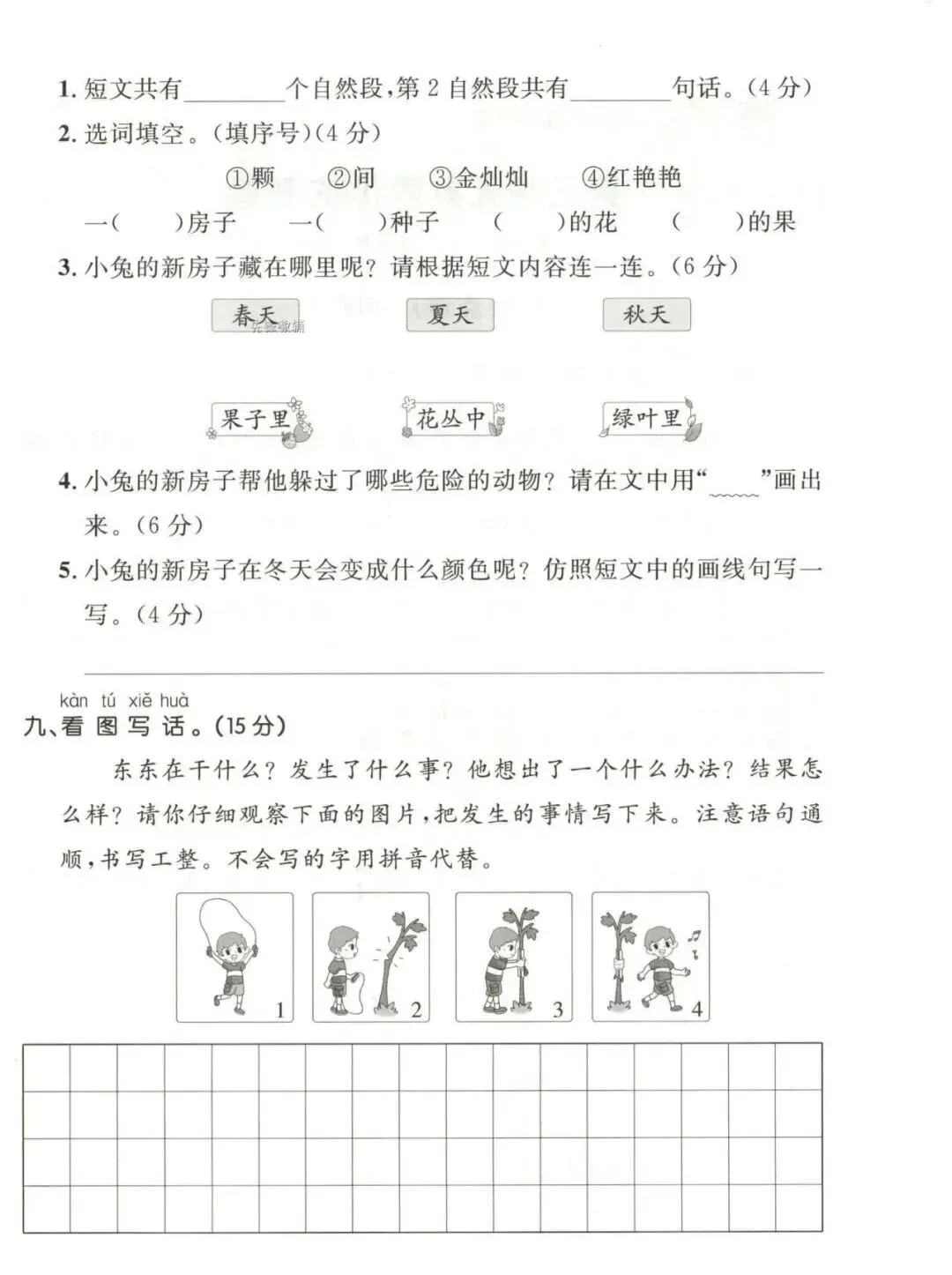 一年级语文下册《第三单元检测卷》2套丨可下载