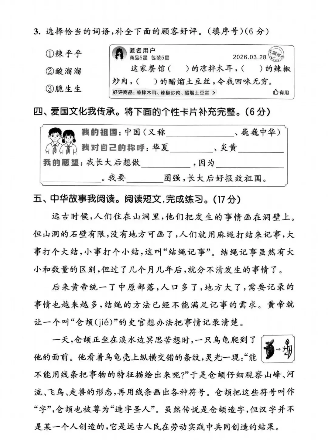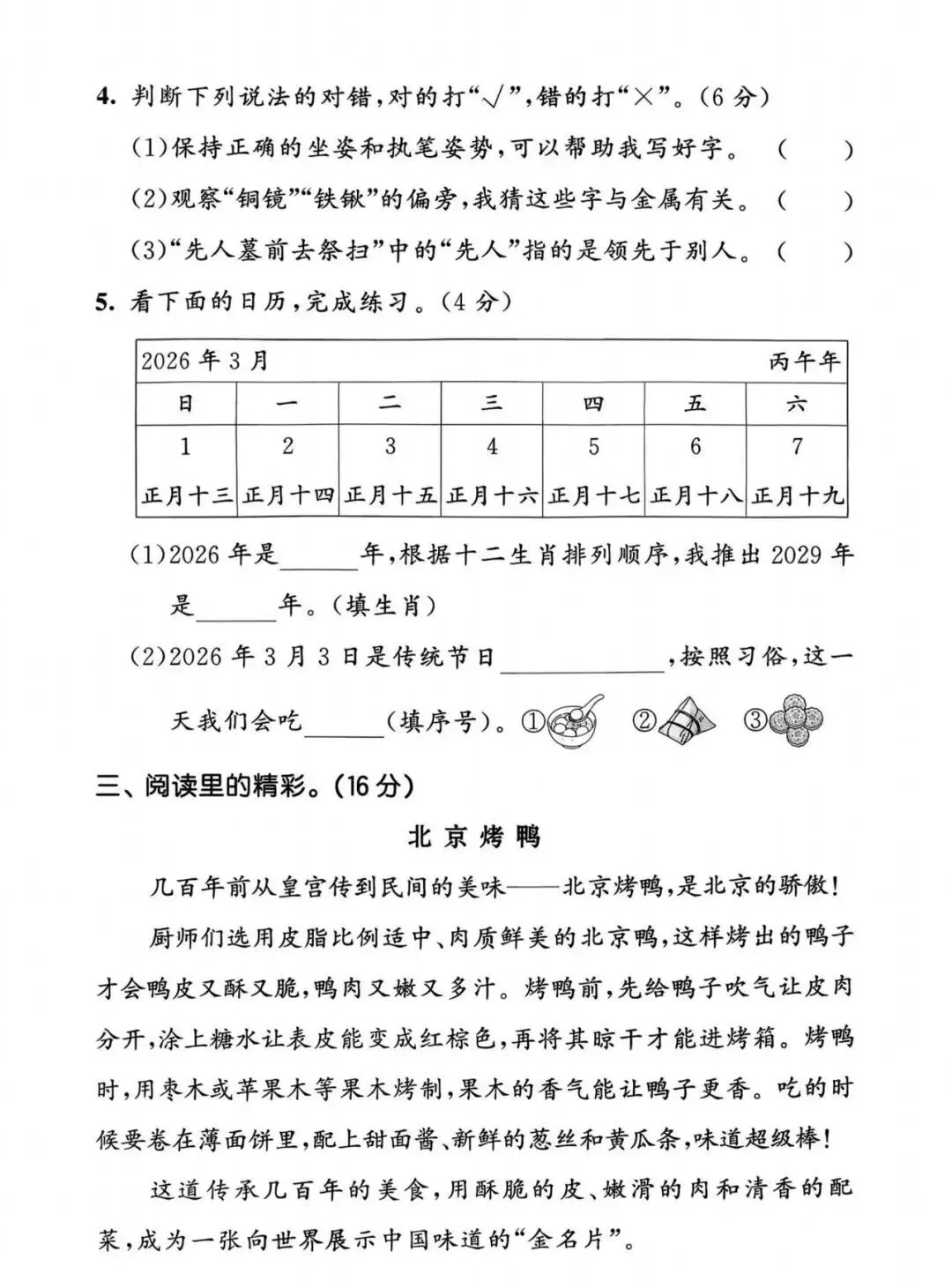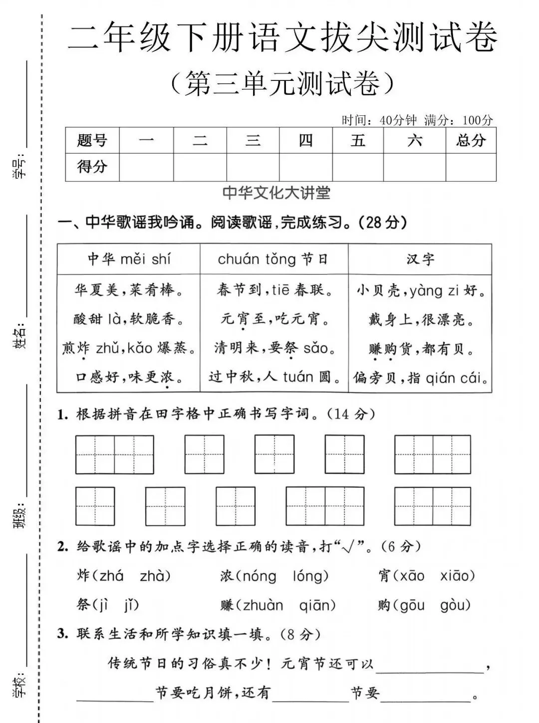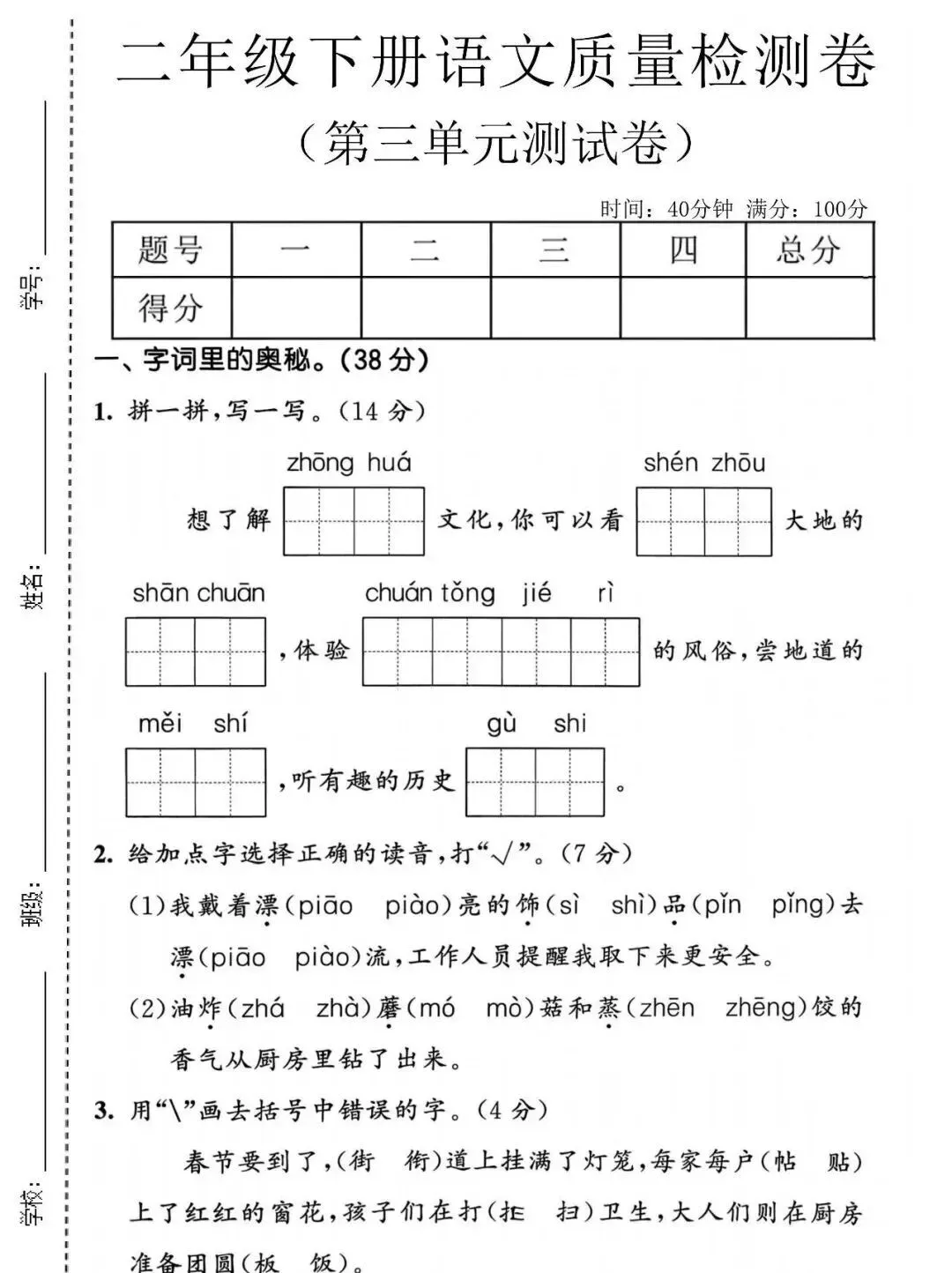 二年级语文下册《第三单元检测卷》2套丨可下载