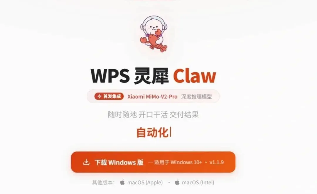 WPS全新办公黑科技,全网首个集成XiaomiMiMo-V2-Pro深度推理模型的办公AI工具,高效搞定文档、表格、PPT全场景办公需求