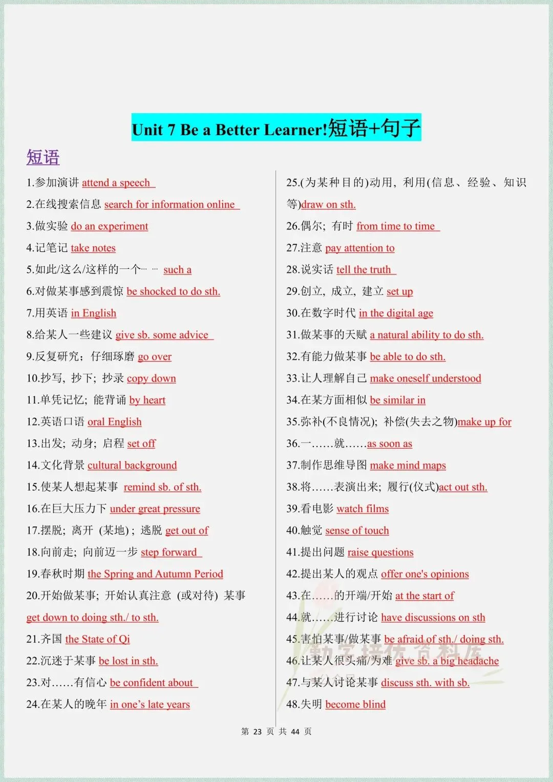 今日老师精心为同学们整理了:最新定稿|2026春(仁爱版)八年级下册英语全册单词表+短语+句子(背诵版+默写版),电子版可下载打印!
