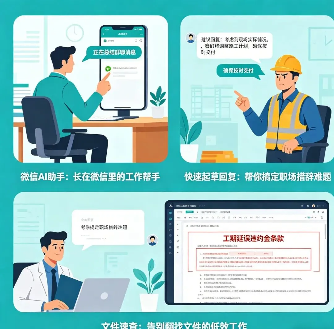 你可以把它理解成一个随叫随到的助手——你在微信里处理工作的时候顺手就能用上,不需要单独打开一个网页或者APP。搞懂这一点,后面三个用法你就知道怎么往自己工作里套了。
