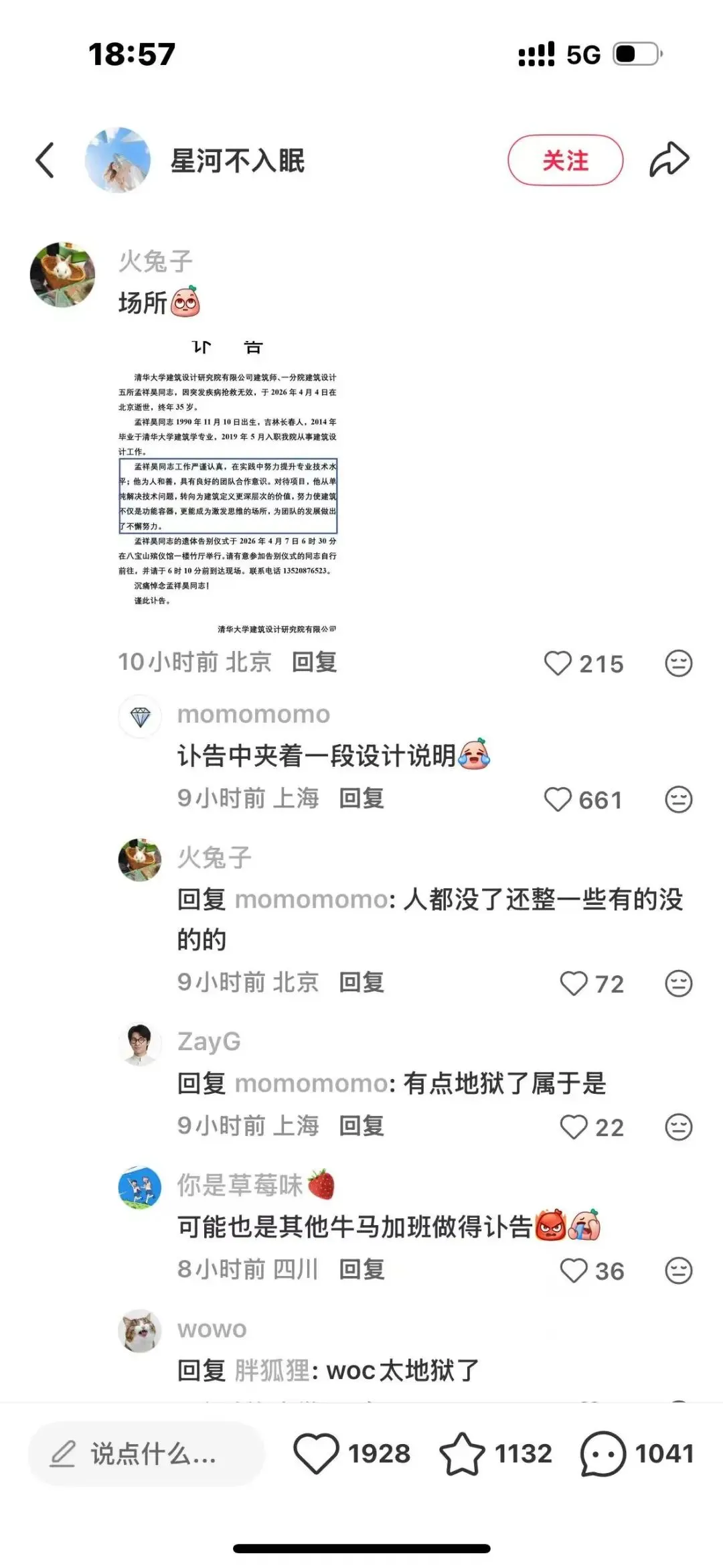 更扎心的是评论区那句“可能也是其他牛马加班做的讣告”。是啊,说不定写这段文字的同事,正一边抹着眼泪,一边习惯性地敲出了熟悉的“设计说明”,毕竟在设计院,写方案、写汇报、写总结,这套话术早就成了肌肉记忆,连写悼词都改不了。