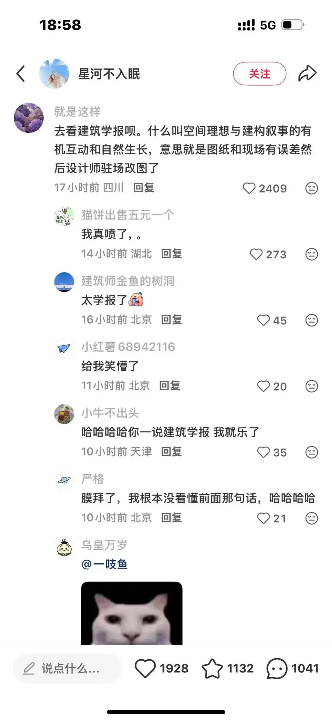 评论区直接炸锅:“讣告中夹着一段设计说明”“人都没了还整一些有的没的”“有点地狱了属于是”,还有建筑人精准吐槽:“去看建筑学报呗。什么叫空间理想与建构叙事的有机互动和自然生长,意思就是图纸和现场有误差然后设计师驻场改图了”,一句话直接把行业黑话的底裤扒得干干净净。