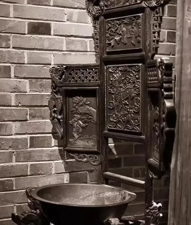 雕花的铁木合金洗脸架,家家户户必备,大水盆一搁,下头还能放毛巾香皂,刷牙洗脸全靠这架子,早晨排大队,家里人口一多都得轮着用,现在卫生间一装修全换成浴柜、洗手台,老物件哪还有地放。