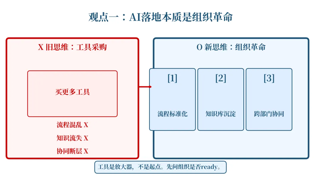 工具当然重要,但你买来的AI工具,最终效果取决于你组织的流程是否标准、知识是否沉淀、协同是否顺畅。工具是放大器,不是起点。