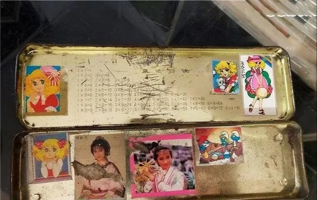 图中铁皮的这个是老文具盒,盖子翻开里面密密麻麻划痕,乘法口诀挂在一边,不背熟扣分的年代,文具盒就成了小抄“藏宝地”,那会儿谁还能没几张卡通贴纸,又有明星又有动画片,贴得彩花花的,真有味道,遇见考试小手一摸就是底牌,女生多半爱打扮文具盒,男生只管刻字画画,文具盒里头啥都有,就是勾住童年的头一物。