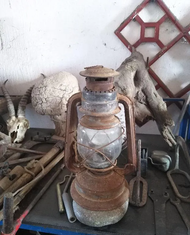 这只铁皮和玻璃配成的是煤油灯,火苗一亮屋里暖洋洋的,停电了最盼它上场,老一辈守着灯纳鞋底,喜欢喊小孩“别靠太近”,要不满手黑烟,灯油味钻鼻子,小时候写功课就靠它撑完,灯光昏昏黄黄的,现在的灯泡再亮,也没这点旧时光的气息。