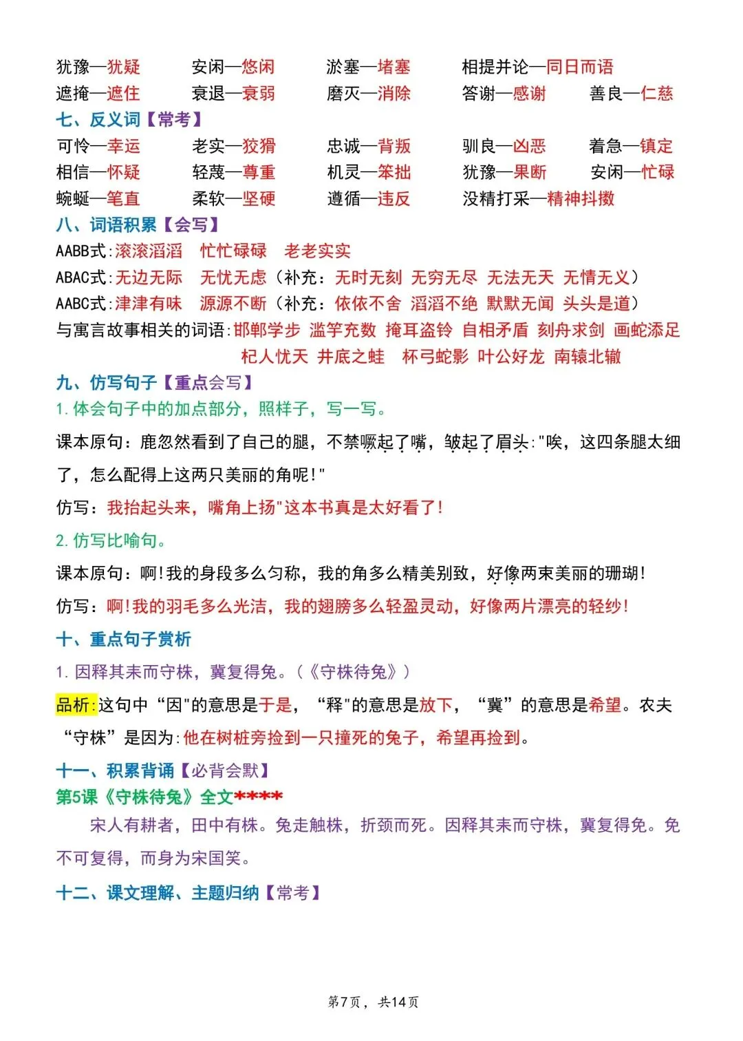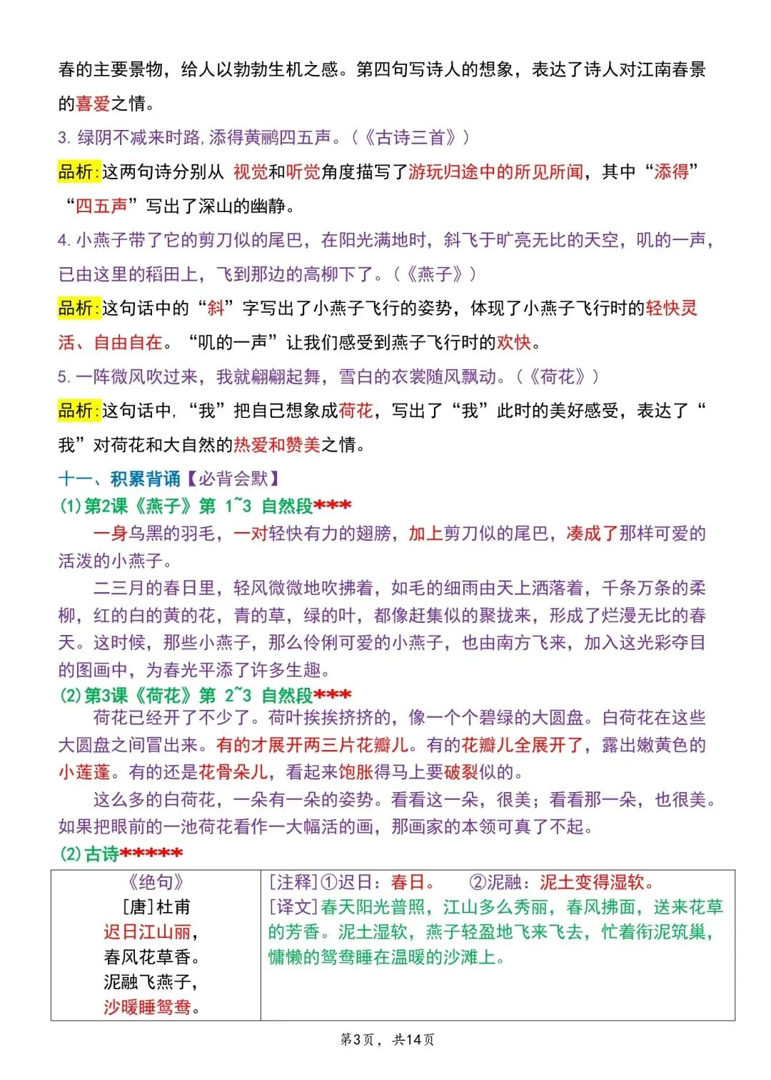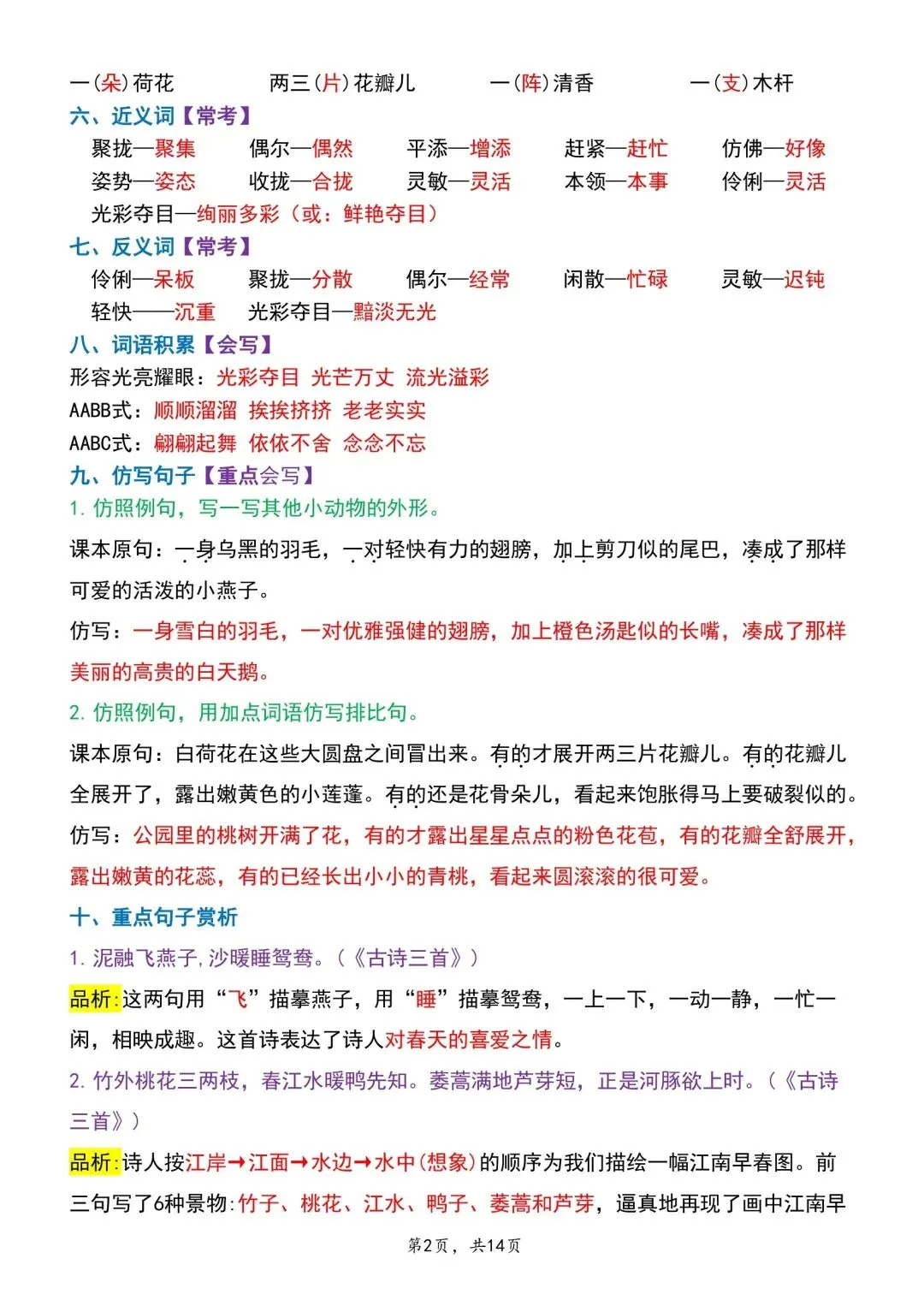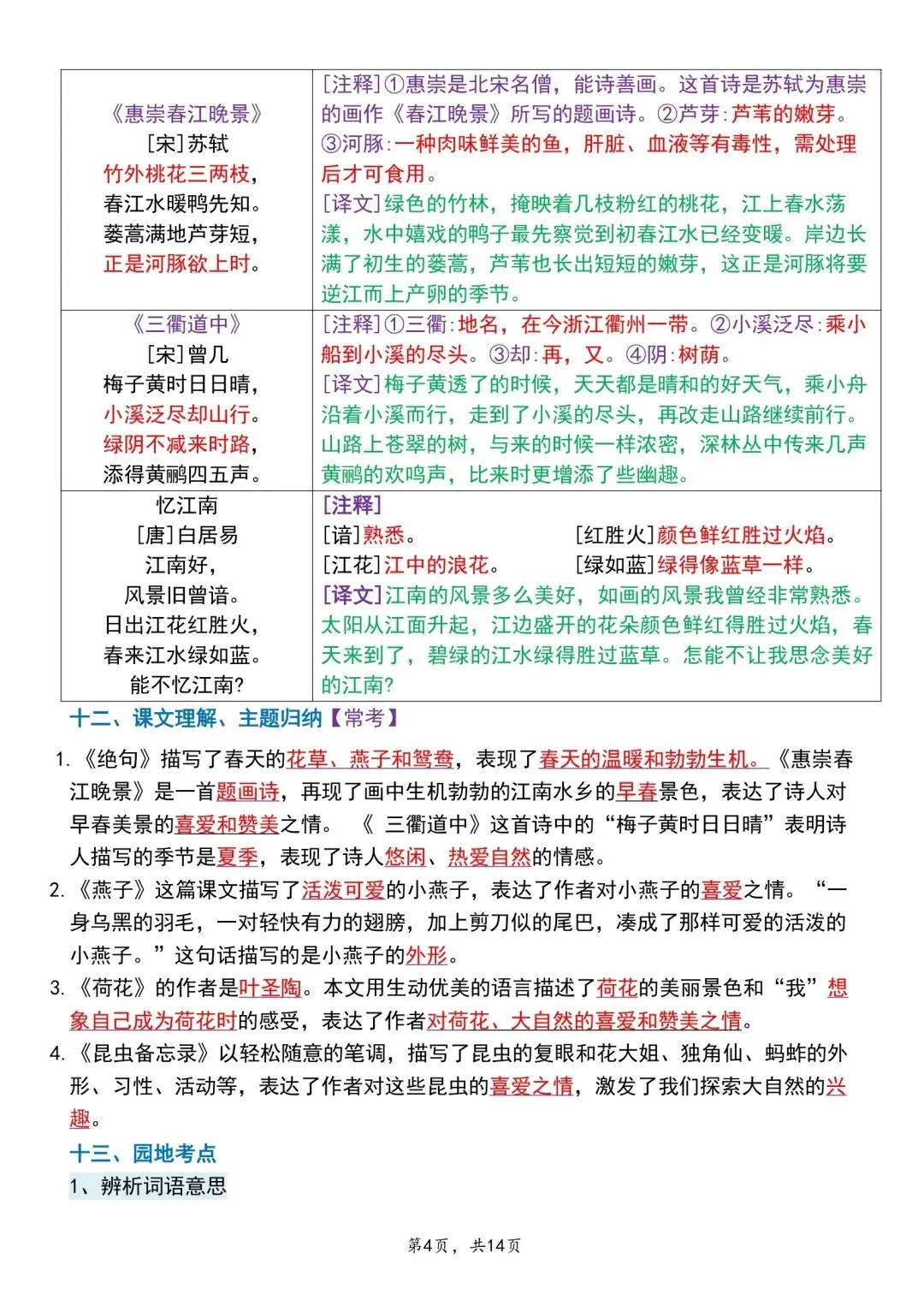 三年级下册语文期中专项归类卷含答案可打印