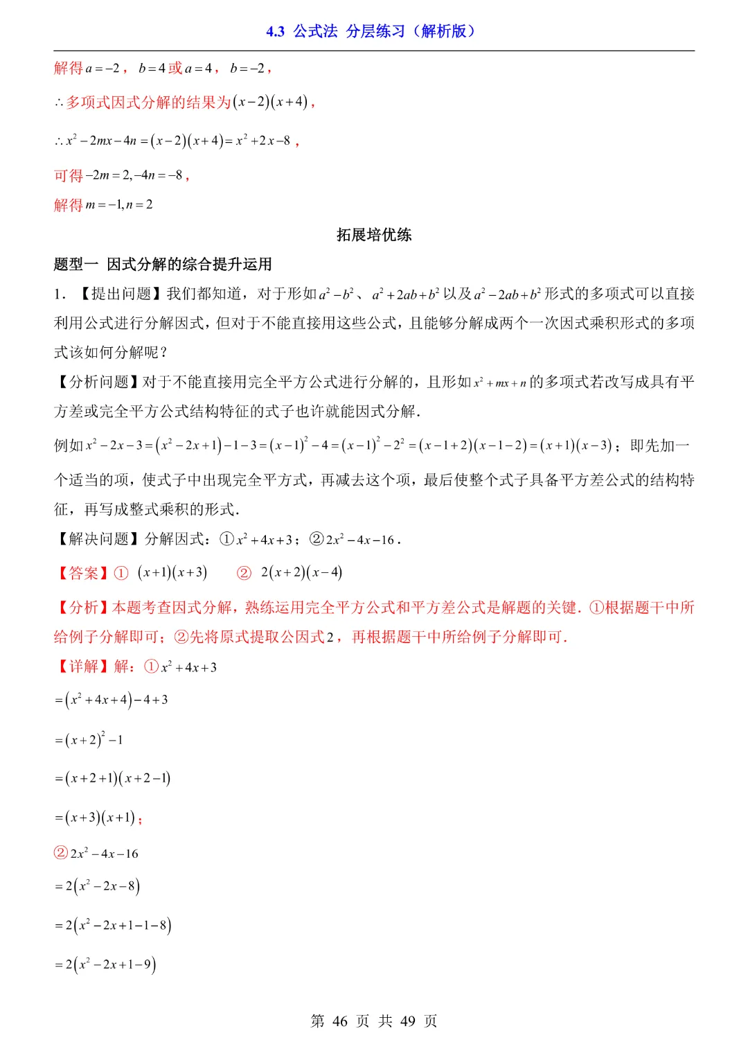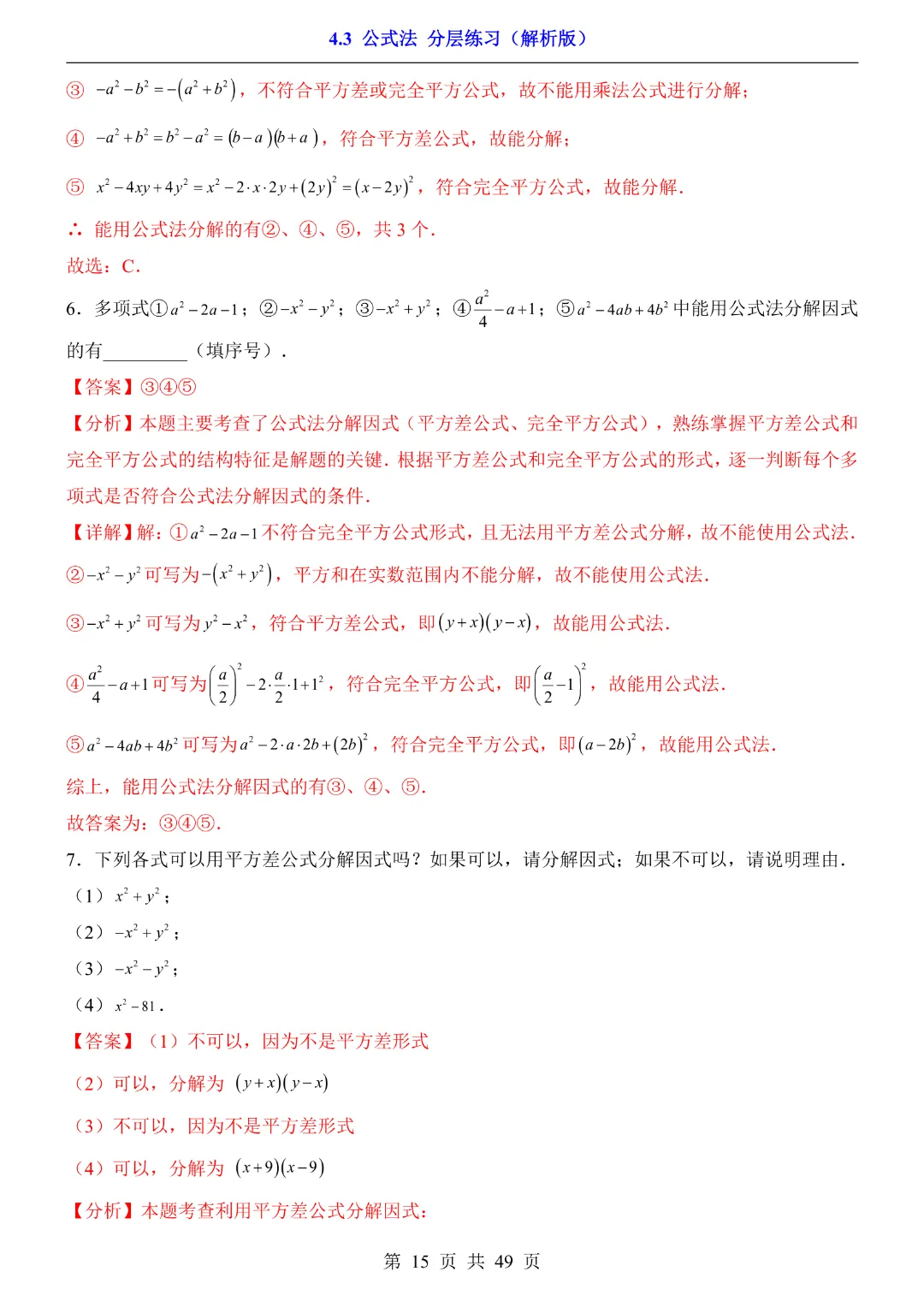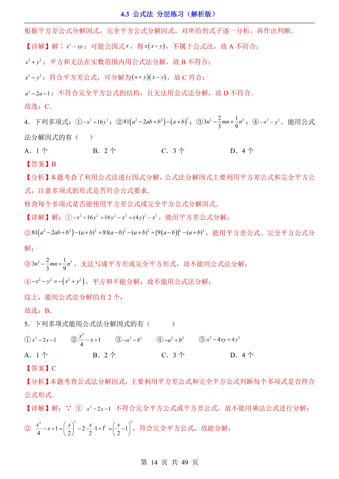 【八年级下册数学】【北师大版】4.3 公式法★分层练习附解析—高清电子版可打印
