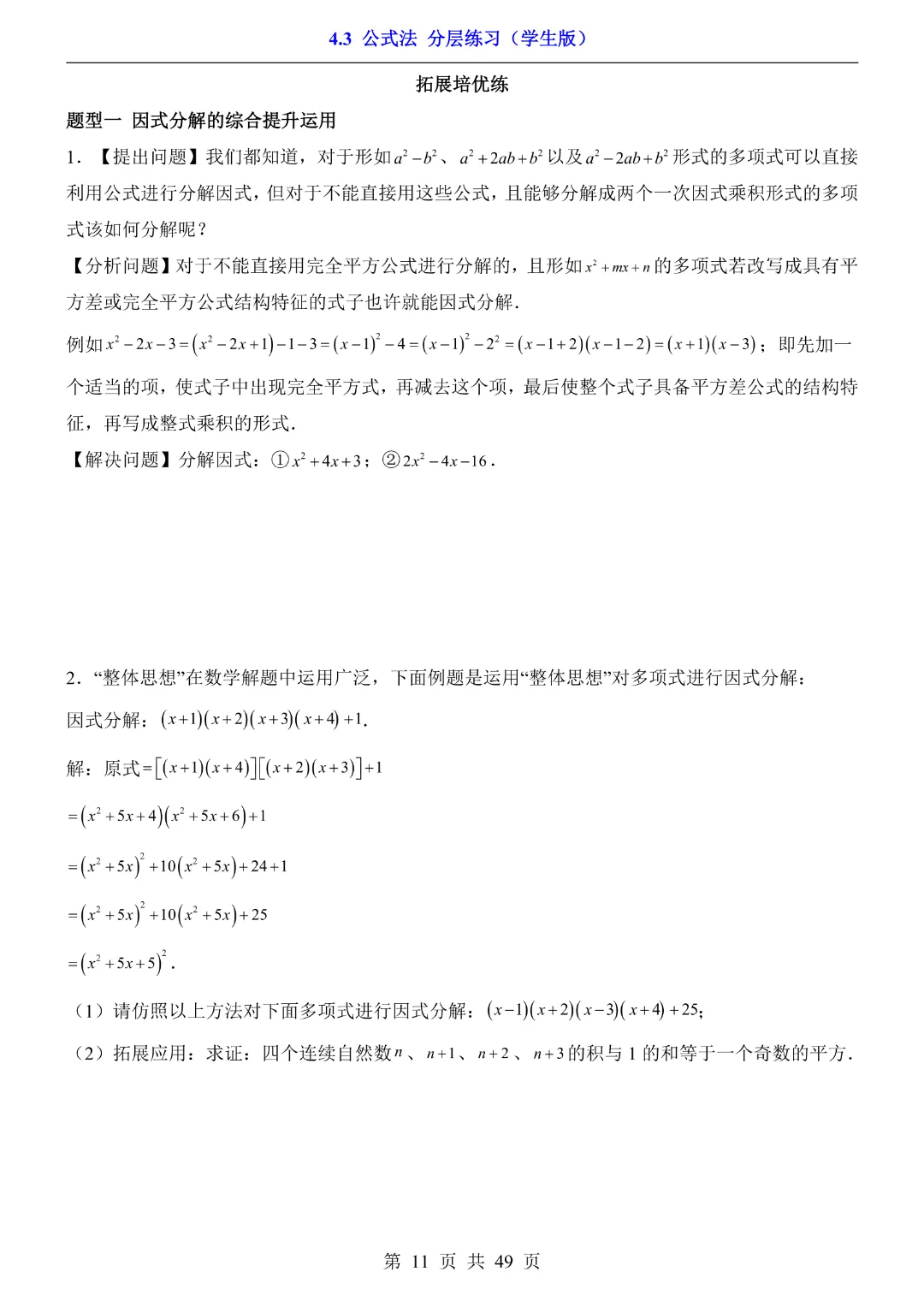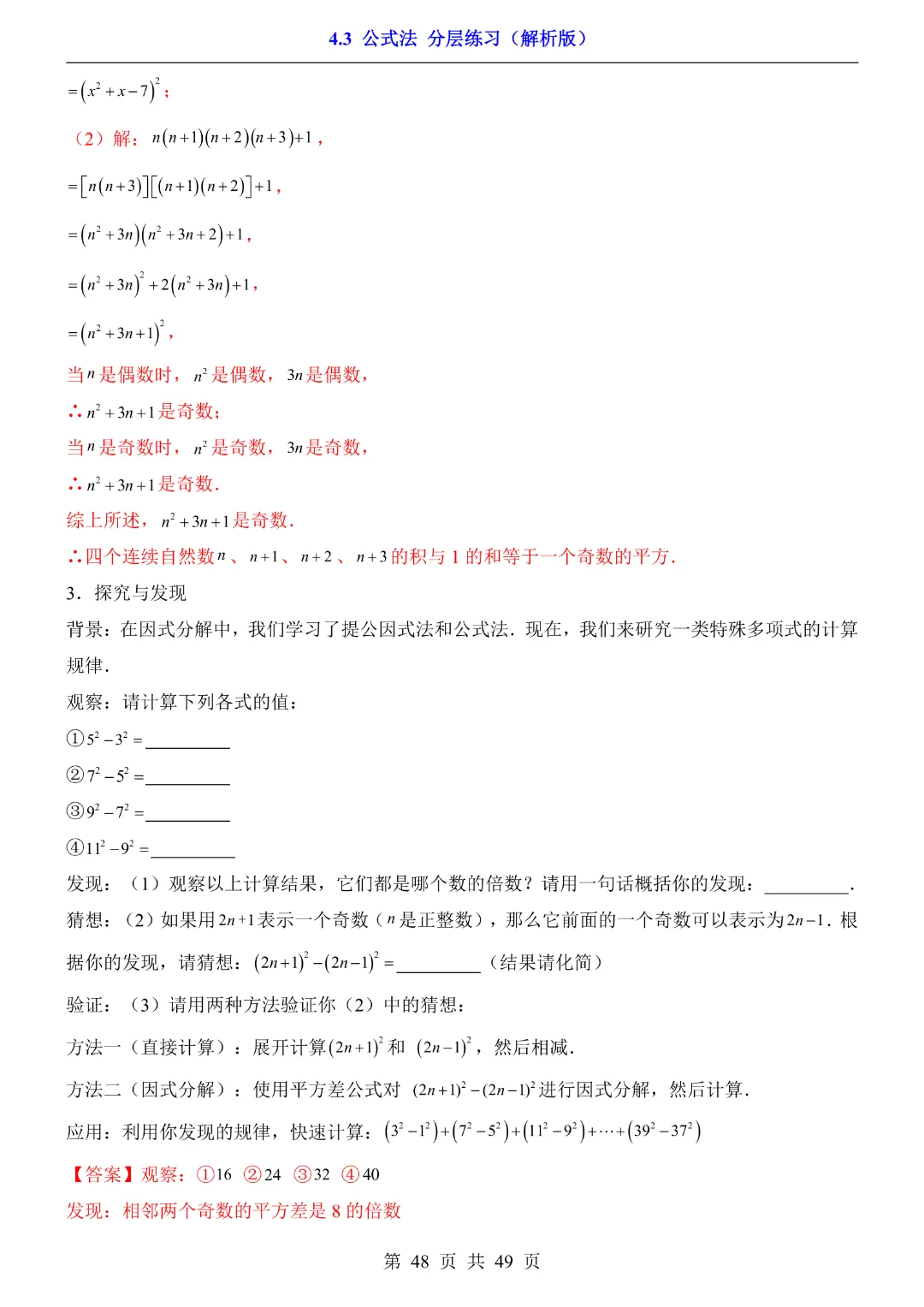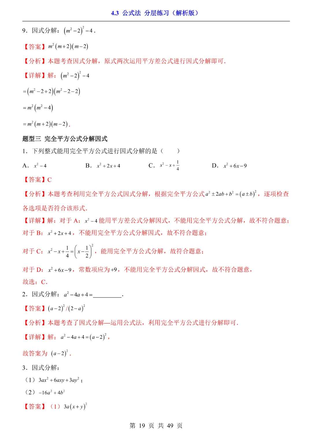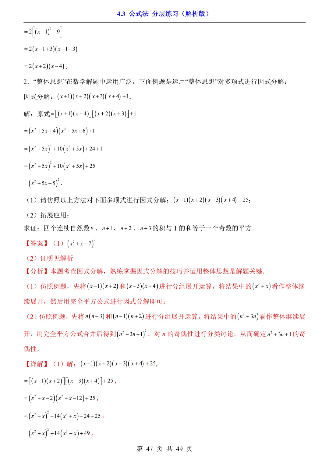 【八年级下册数学】【北师大版】4.3 公式法★分层练习附解析—高清电子版可打印