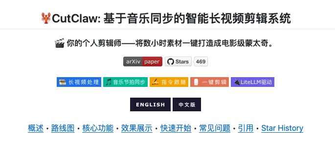 CutClaw:几小时素材+一首歌,AI自动剪成电影级混剪