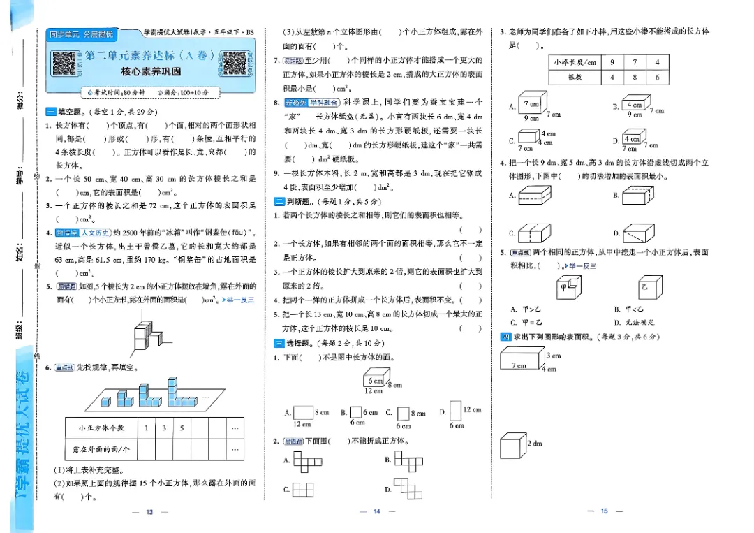 26春五年下册数学北师大版【单元期中期末卷】学霸提优大试卷~完整高清可打印