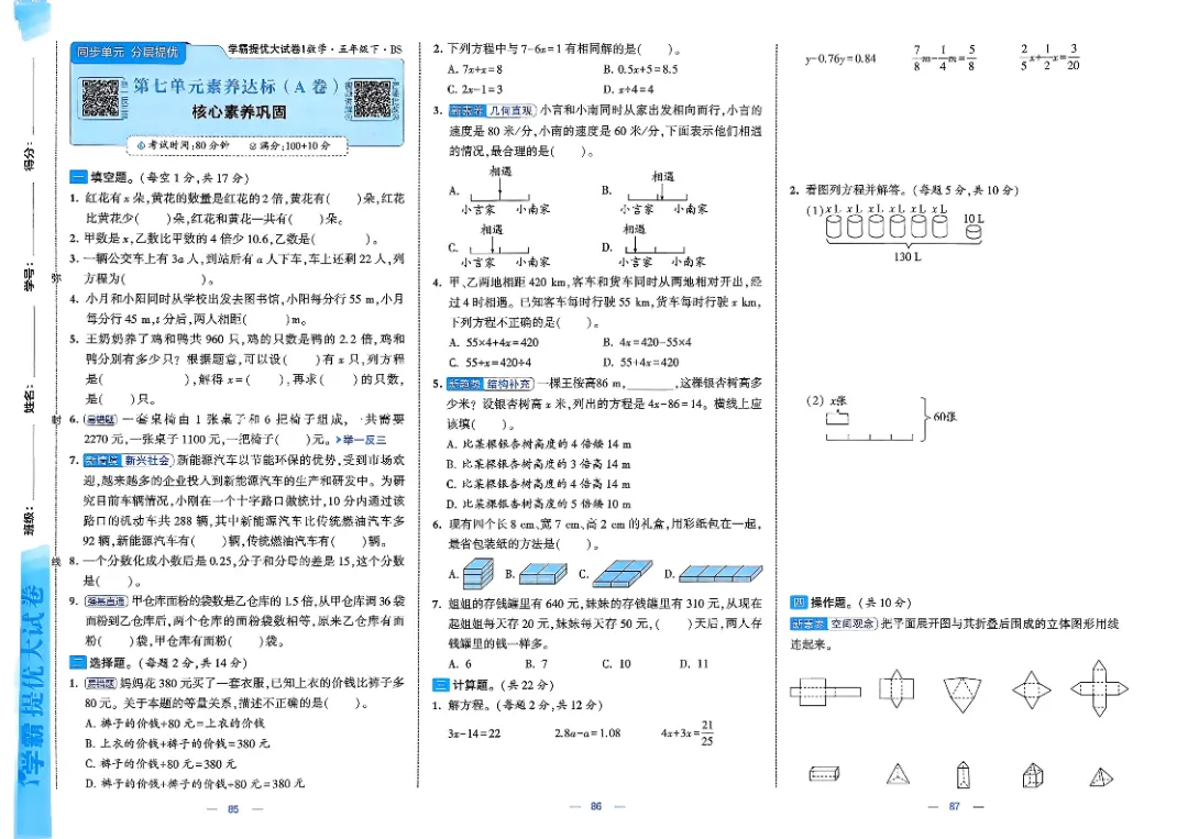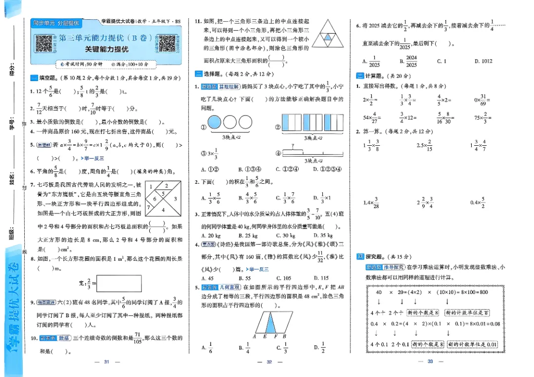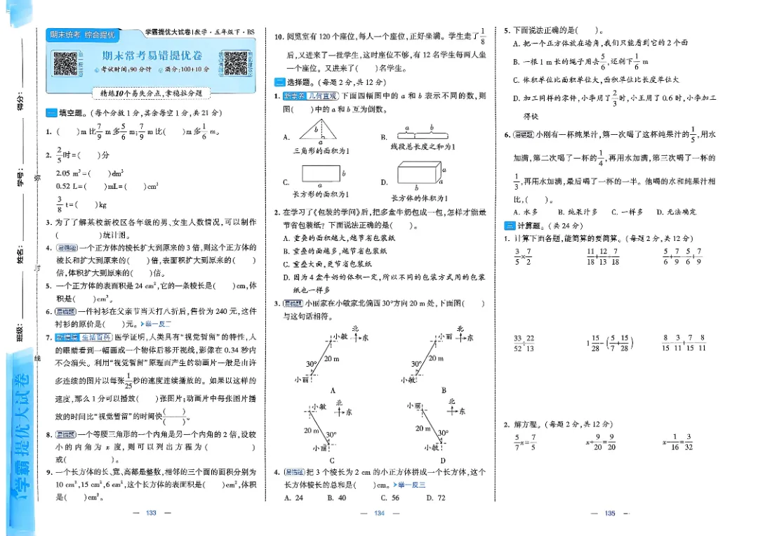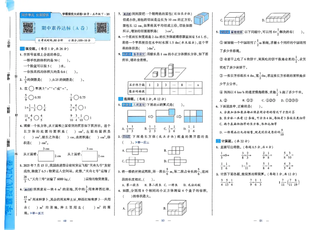 26春五年下册数学北师大版【单元期中期末卷】学霸提优大试卷~完整高清电子版可打印