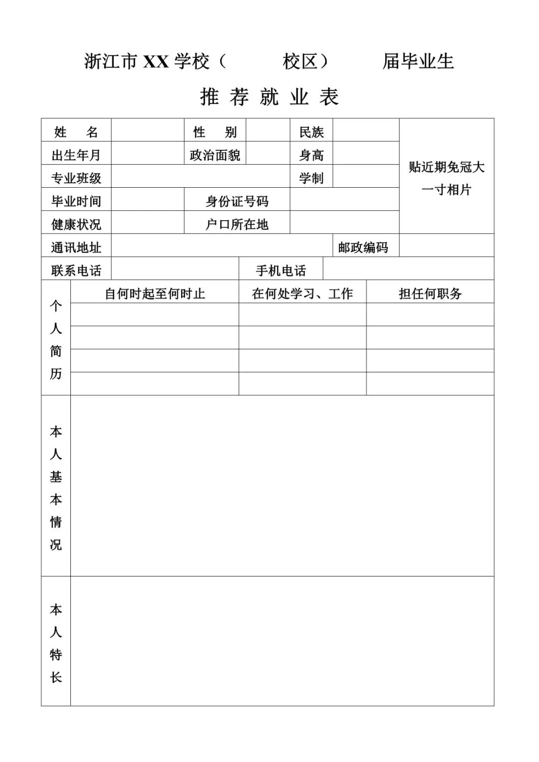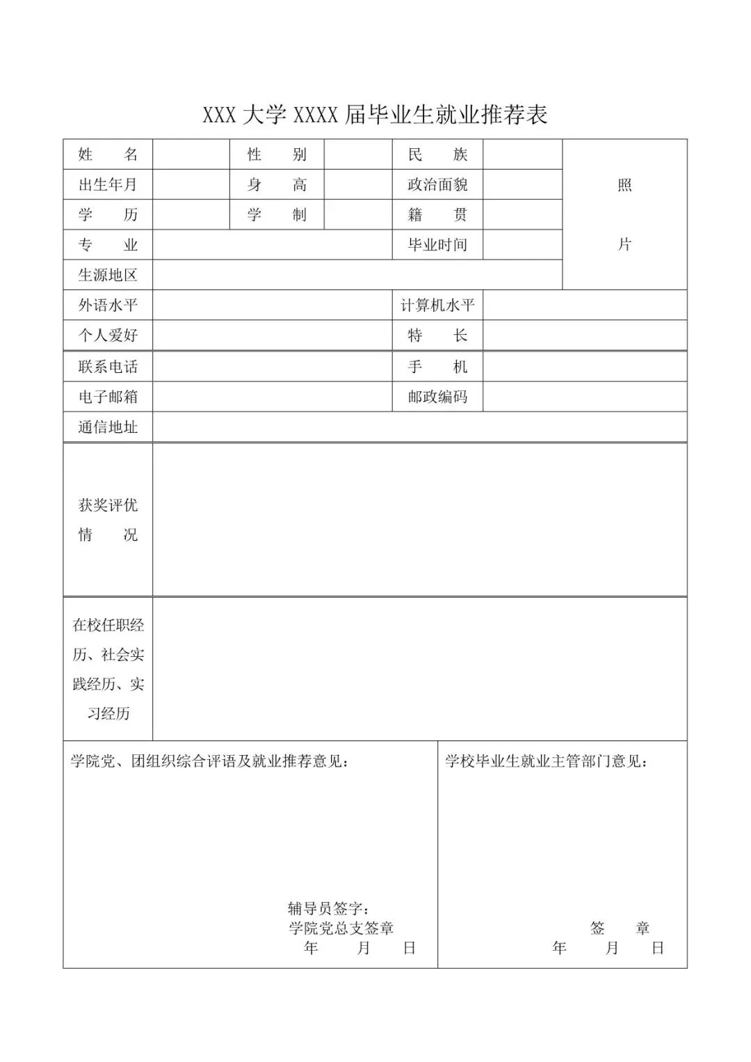 大学生就业推荐表