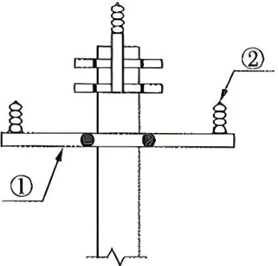 ①横担是装在电杆上端,用来固定绝缘子架设导线的,有时也用来固定开关设备或避雷器等。