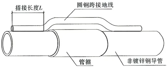 (2)圆钢跨接地线搭接长度应为圆钢直径的 6 倍,所以其最小搭接长度 L:6×6=36(mm)。