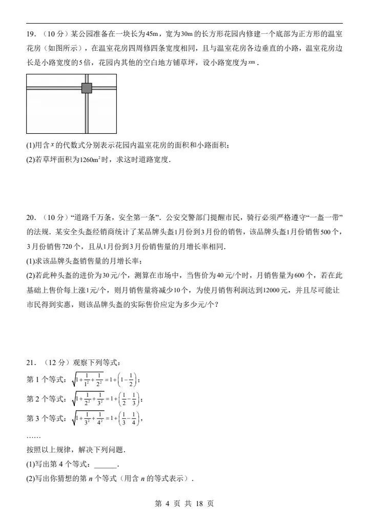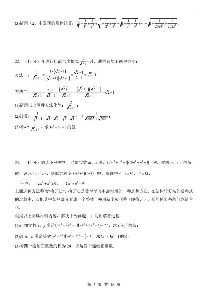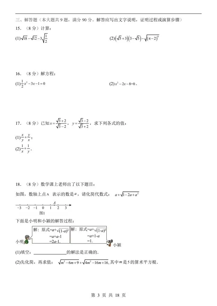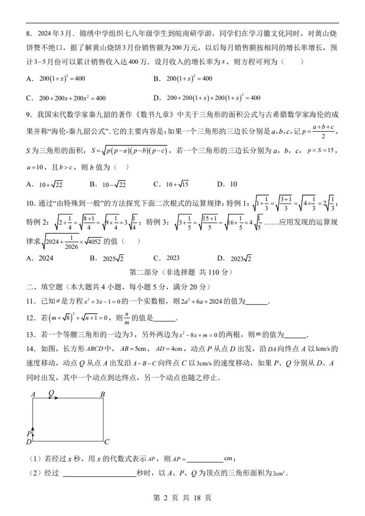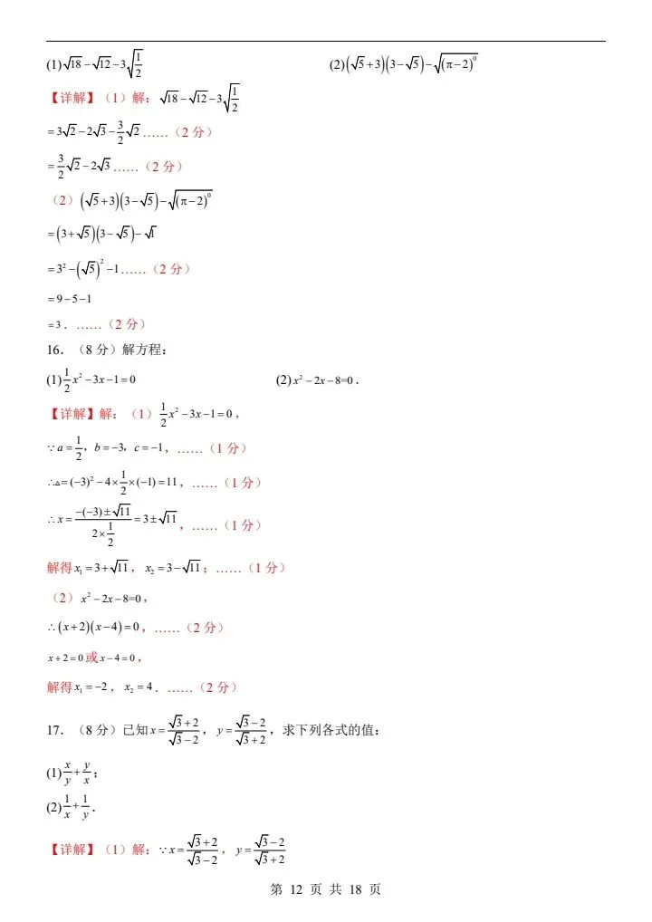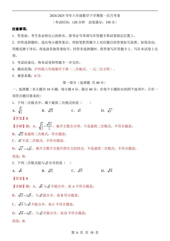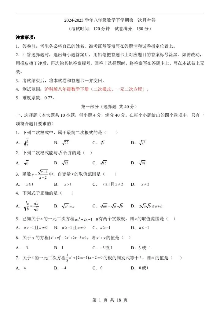 2026年沪科版八年级下册数学《第一次月考试卷》附详细解析版,完整电子版可打印