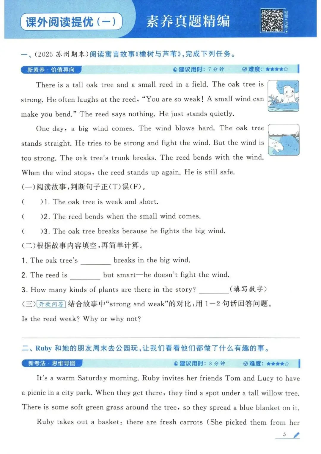 译林版英语3-6年级下册《5星学霸》同步练习+听力材料+答案解析 pdf电子版可打印。同系列语数英各版本一二三四五六年级下册均有。完整电子版请拉至文末左下角阅读原文处自取,欢迎收藏和下载。
