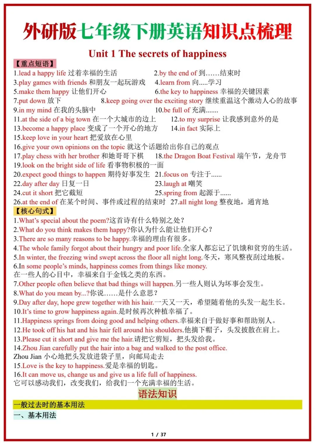 2026版七年级下册外研版英语知识点梳理清单,可打印电子版!