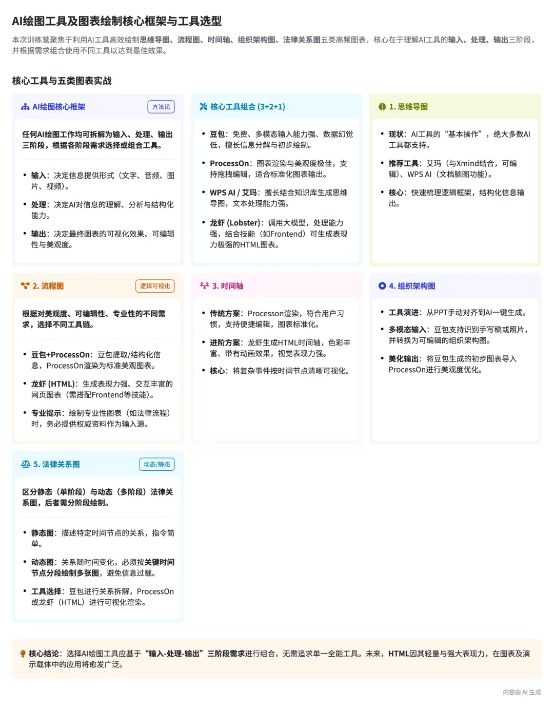 💡 本次课程核心是:围绕AI可视化建立“输入-处理-输出”完整链路,并通过5种基础工具提升图表生产效率与呈现质量。
