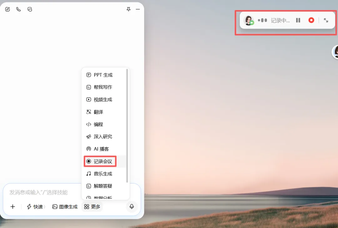 你只要打开豆包,如果你在开会,豆包会自动提醒你是否在会议中,你只要点了确定,就可以自动记录会议内容并整理成你想要的会议纪要。