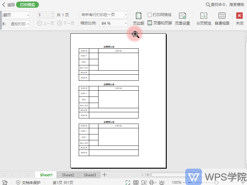 ■ 在“打印预览”工具栏,也可设置打印缩放,并支持实时预览打印效果。