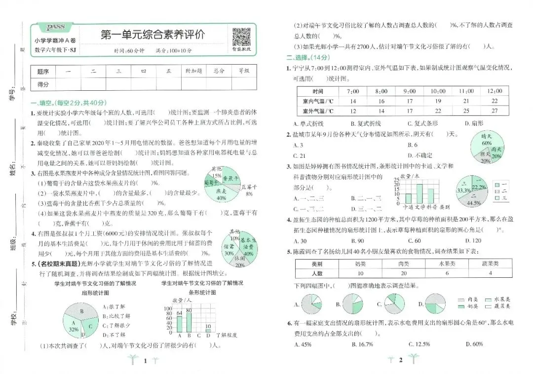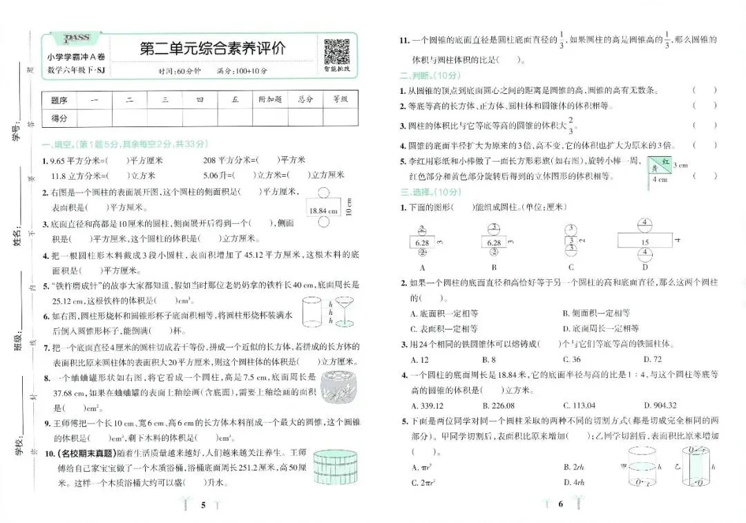 苏教版数学六年级下册《小学学霸冲A卷》(可下载)