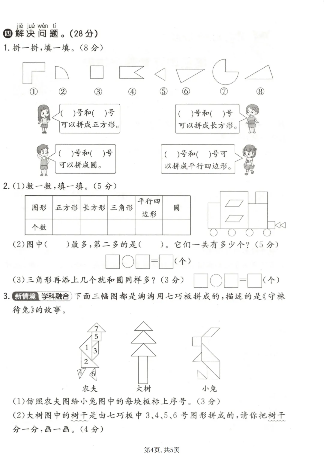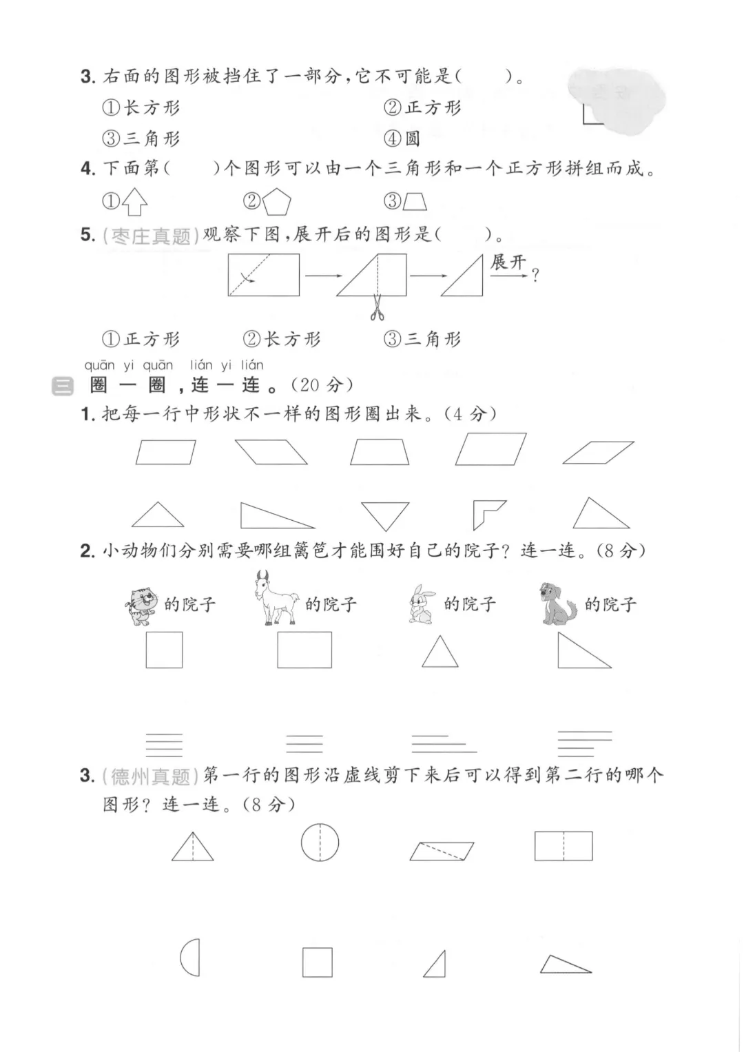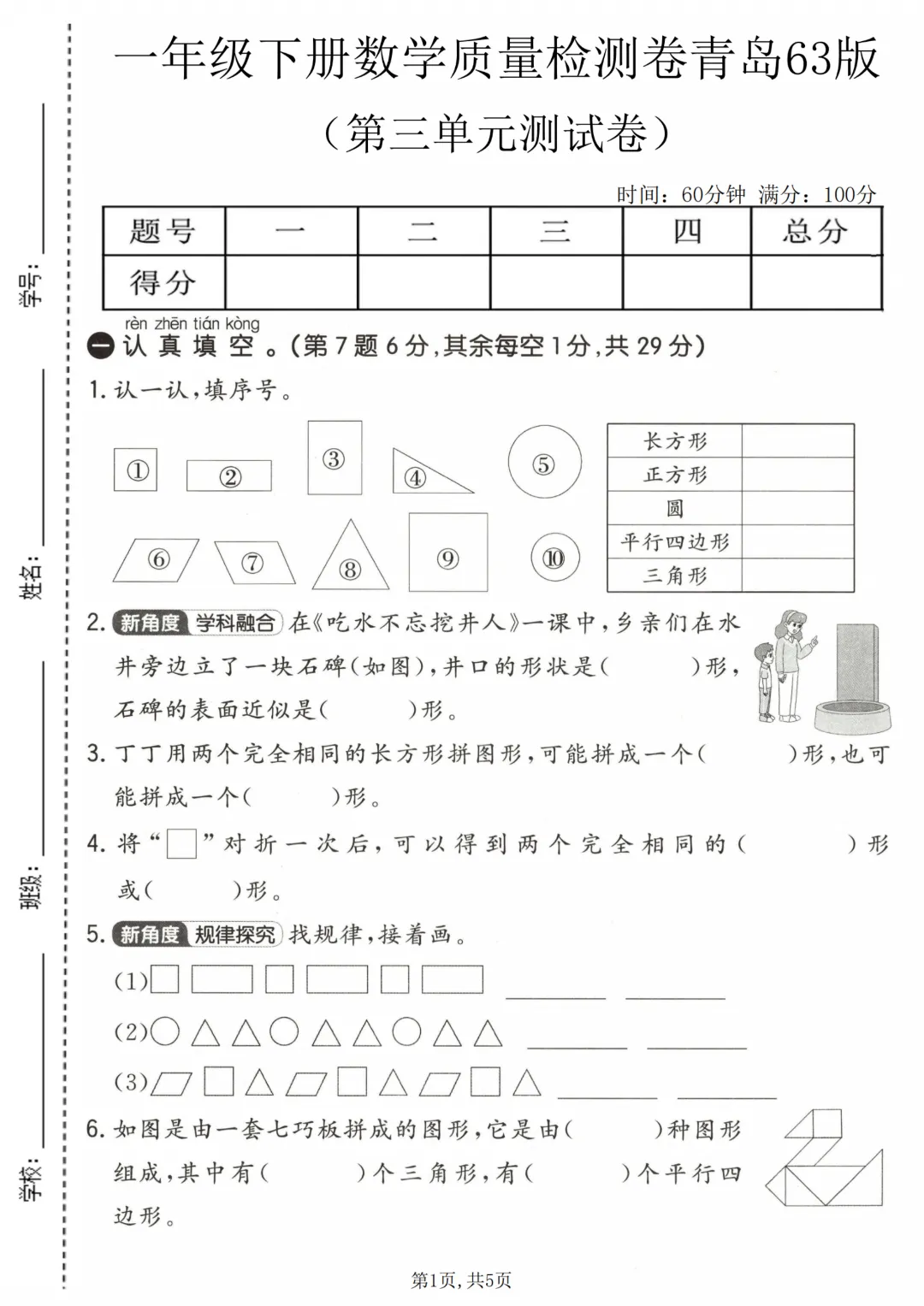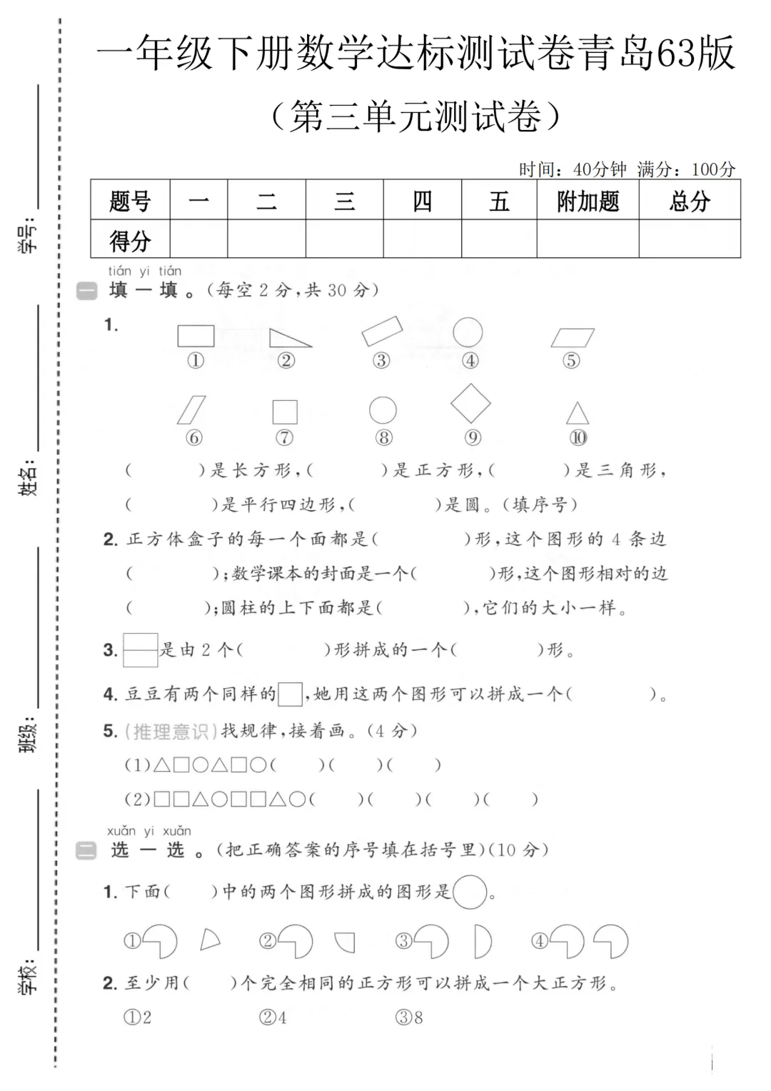 ✨今日给家长朋友们分享的是:2026年春新一年级下册青岛63版数学《第三单元拔尖测试卷3套》(含答案解析)电子版可打印