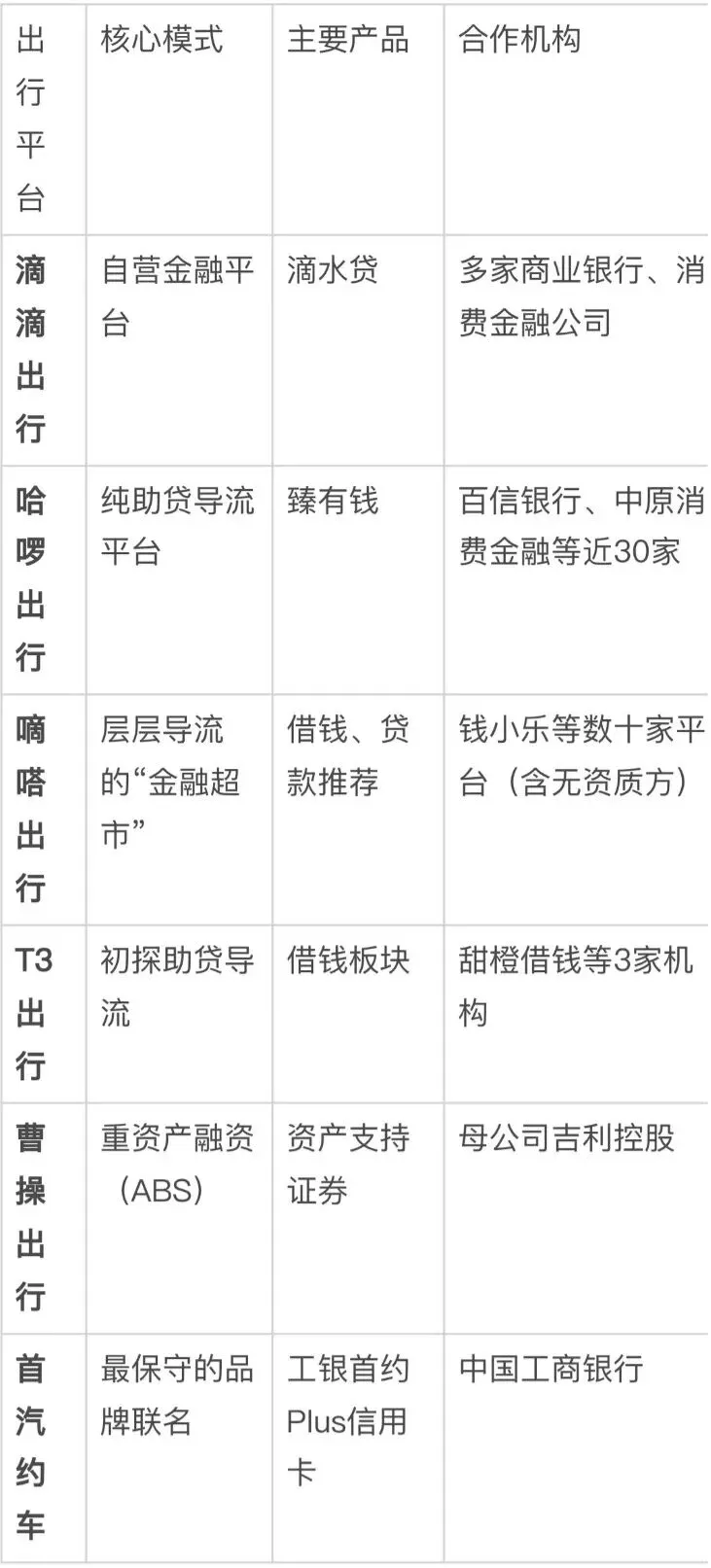 这六家平台的信贷业务,本质都是将出行场景积累的用户和流量,通过不同方式进行金融变现: