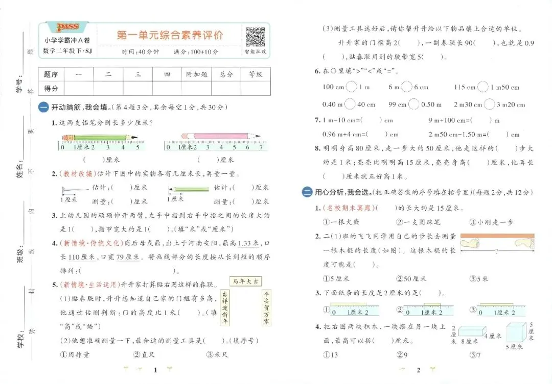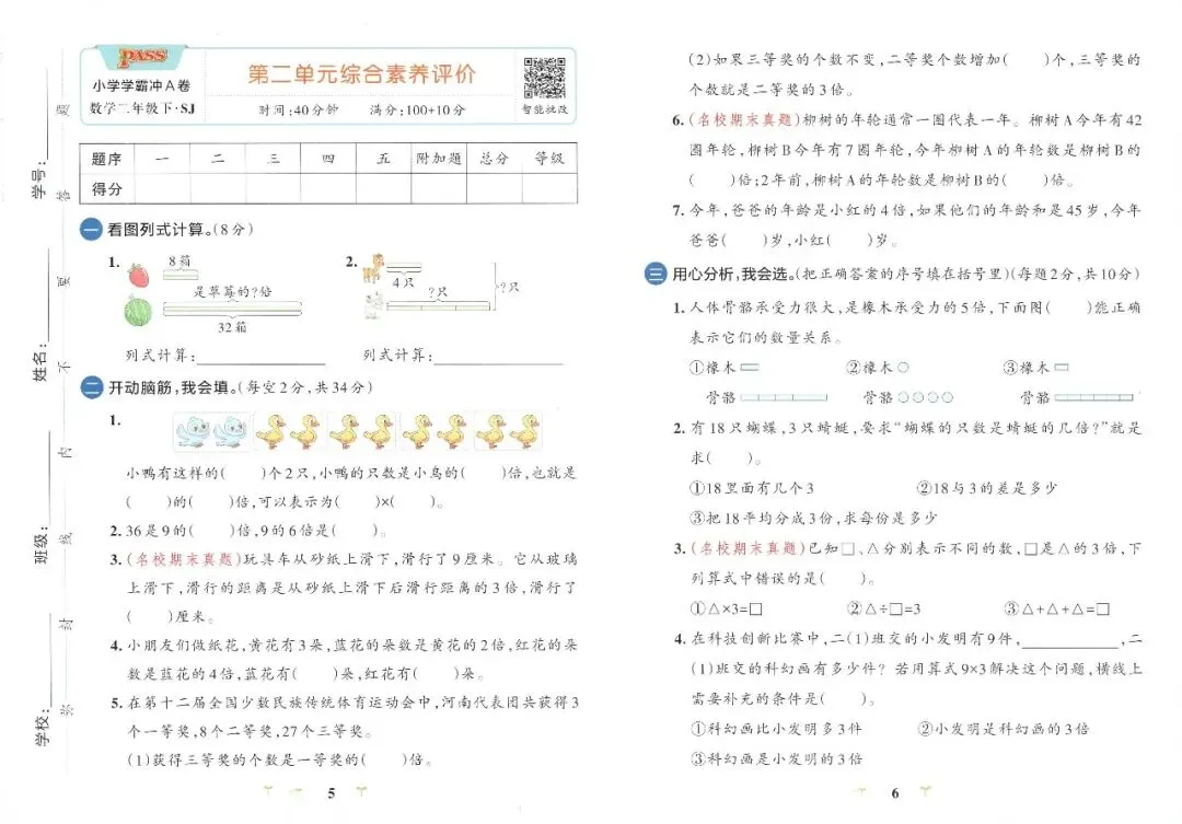 苏教版数学二年级下册《小学学霸冲A卷》(可下载)