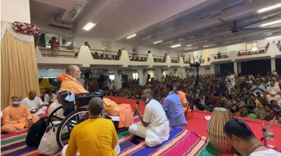 卡利年代(Kali-yuga)是充满缺陷的海洋,但它有一个优点——仅仅通过唱诵奎师那的圣名和荣耀(将获得拯救)。我分享了《卡利•桑塔茹阿纳•奥义书》(Kali-santāraṇa Upaniṣad)中的逍遥时光:纳茹阿达•牟尼询问主布茹阿玛如何免受卡利年代的影响,主布茹阿玛揭示了哈瑞•奎师那•玛哈•曼绰。