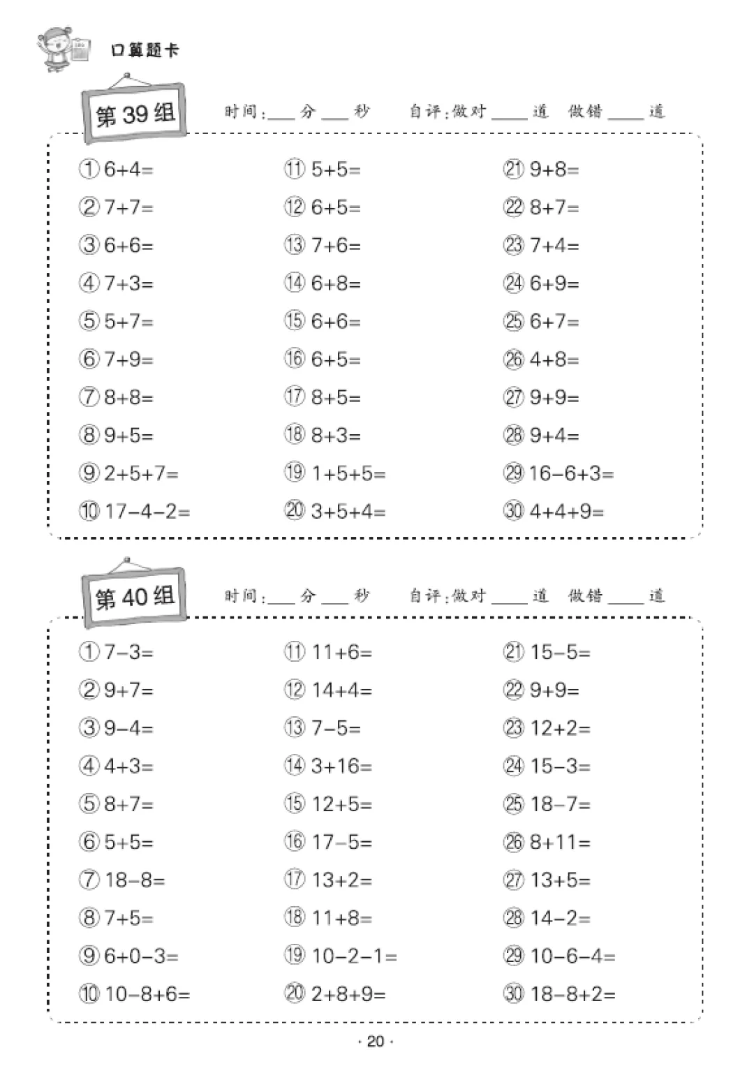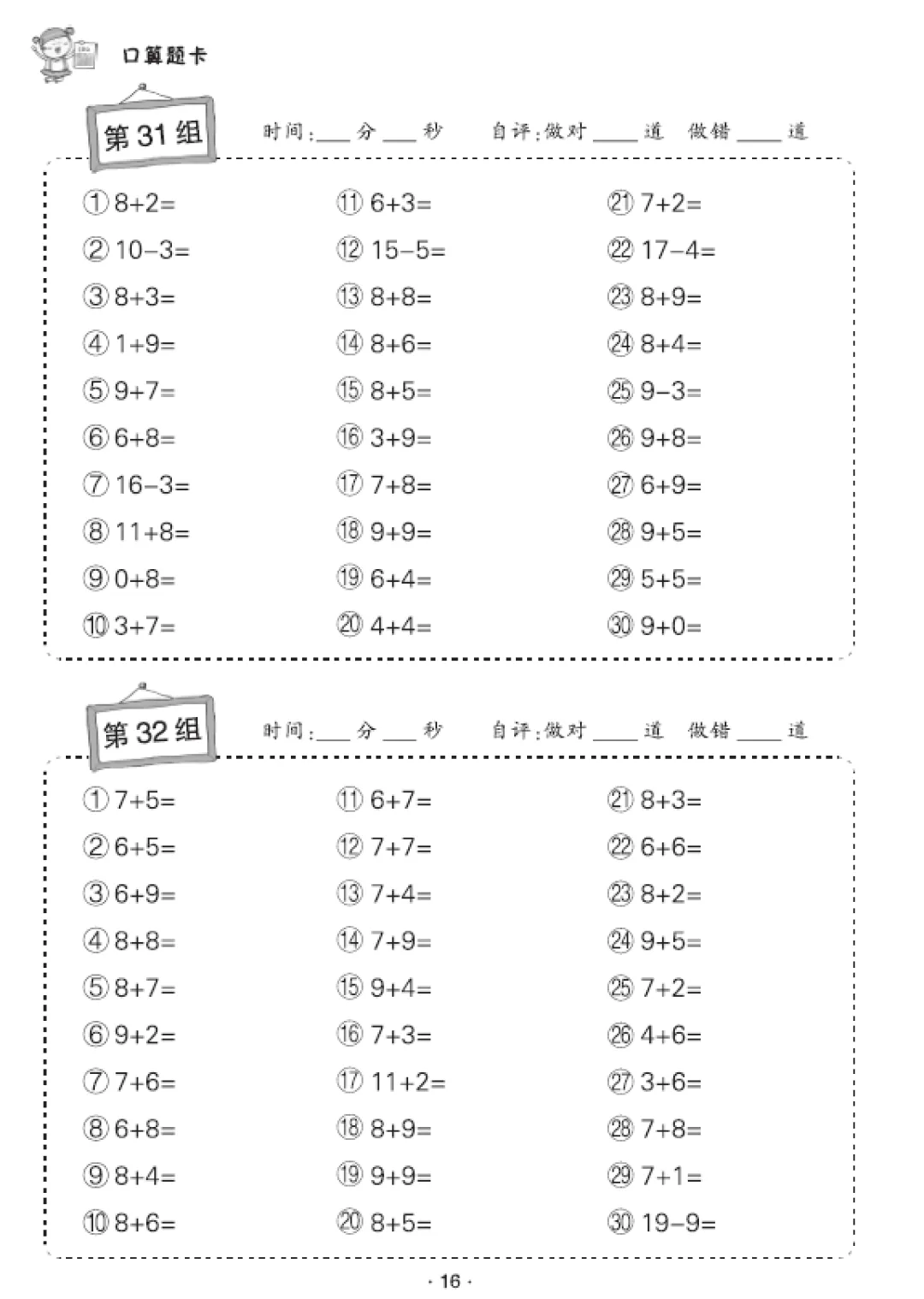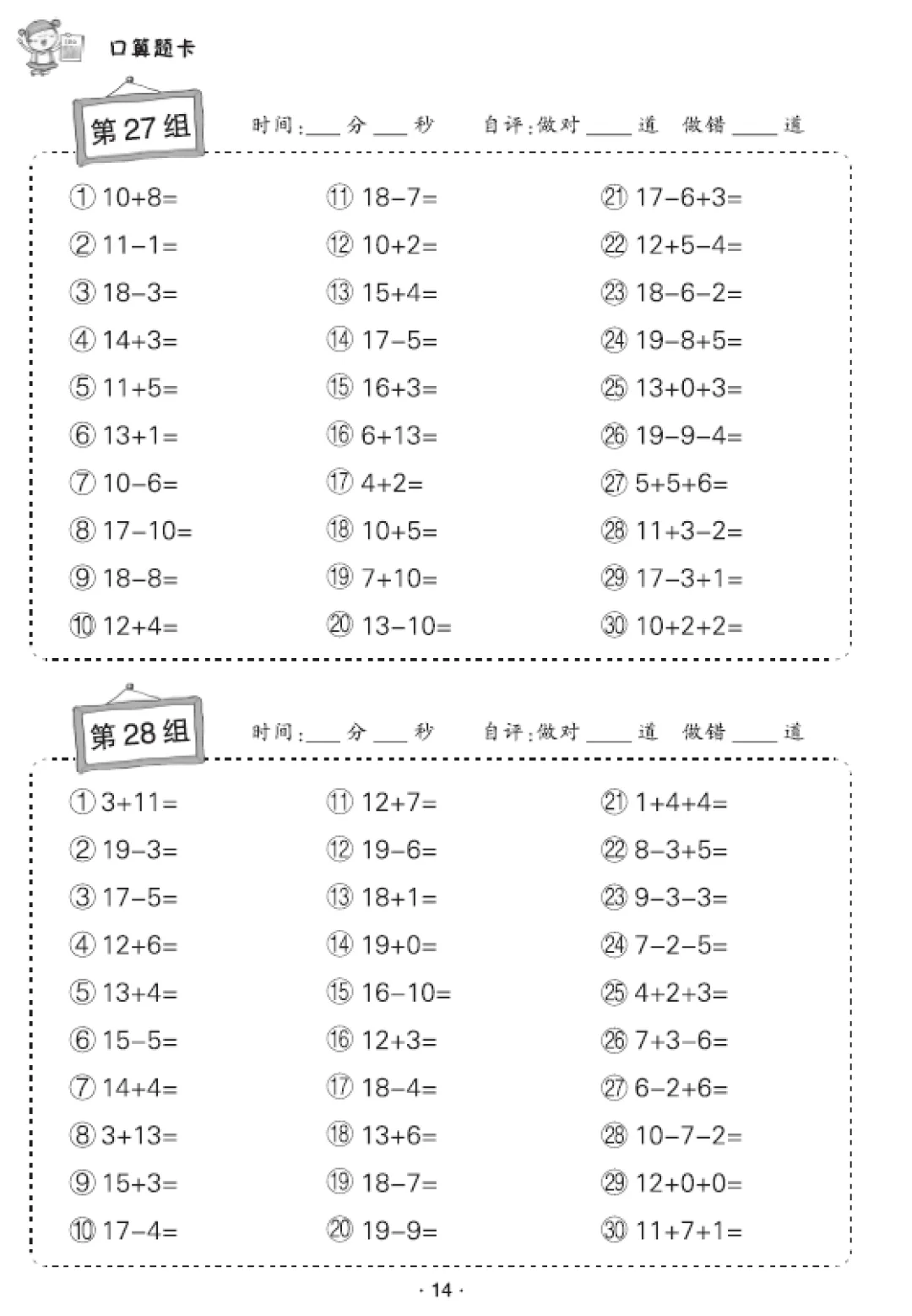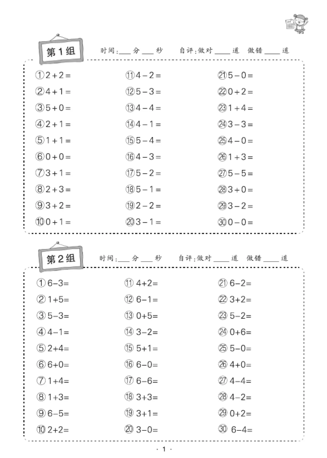 一年级数学口算天天练(30页),电子版可打印