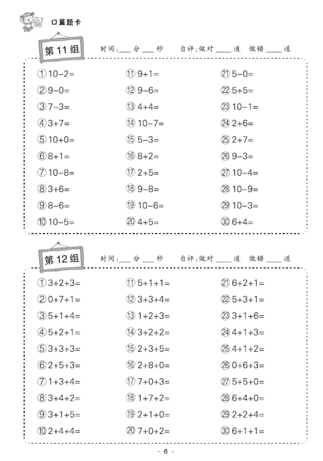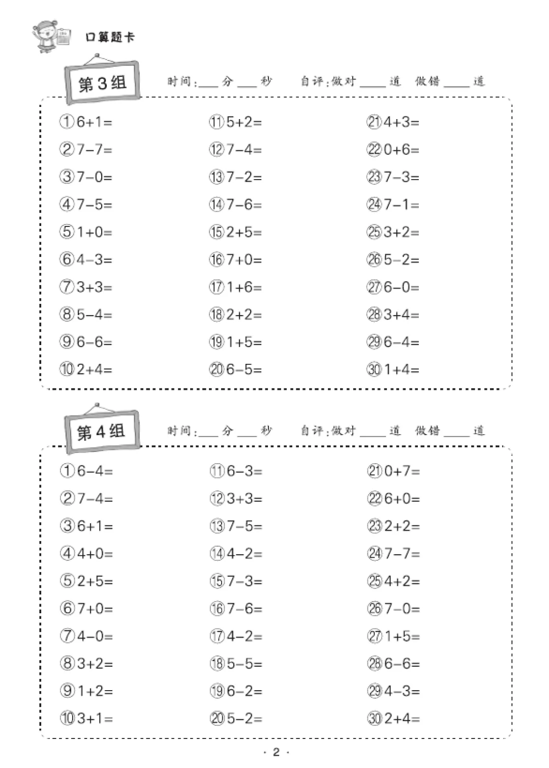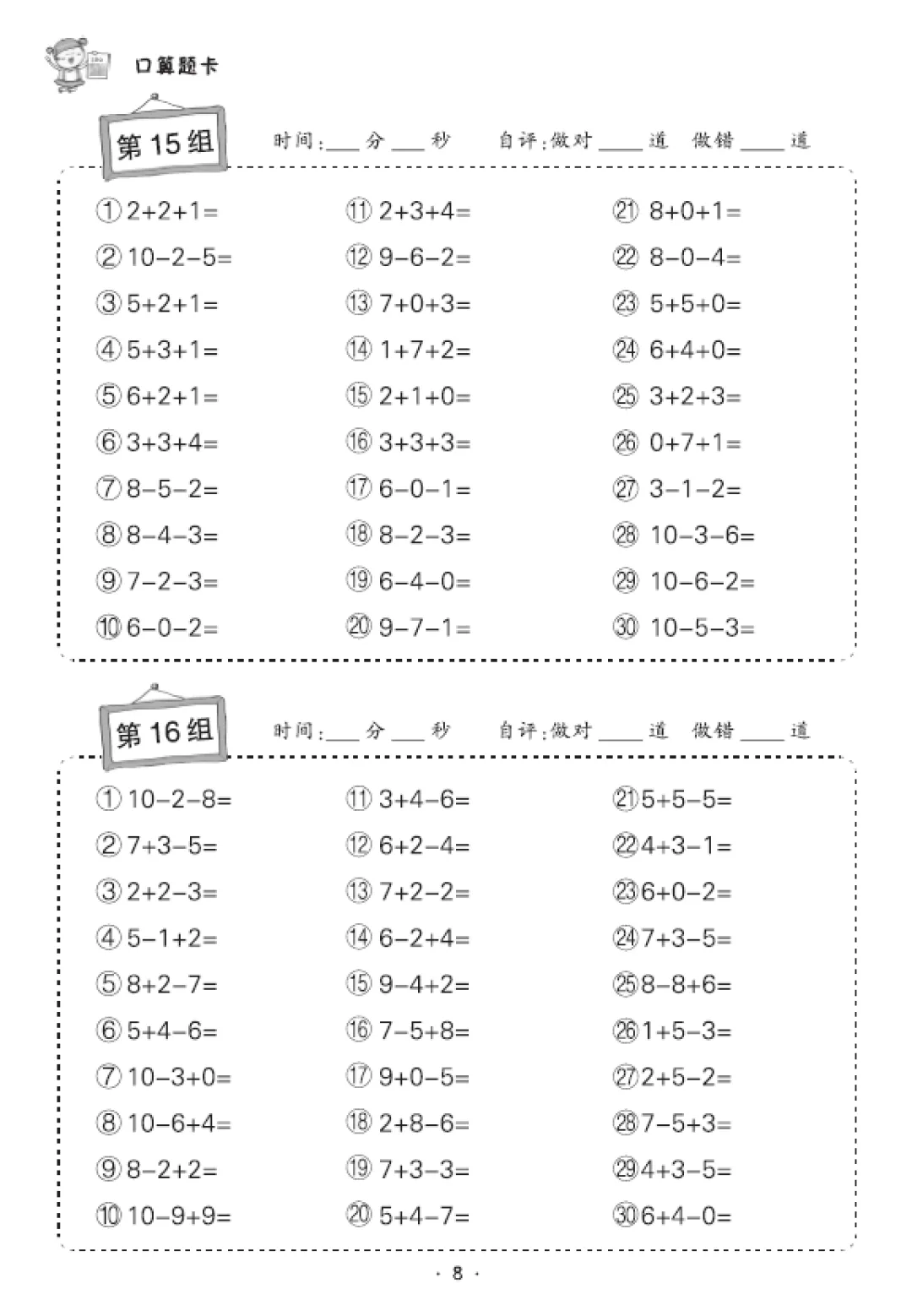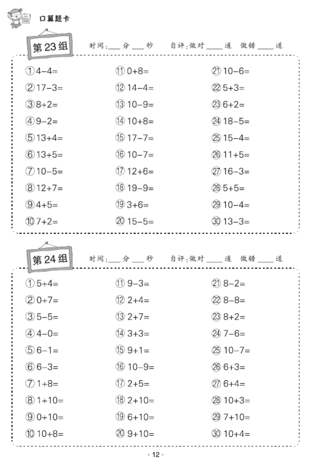 一年级数学口算天天练(30页),电子版可打印