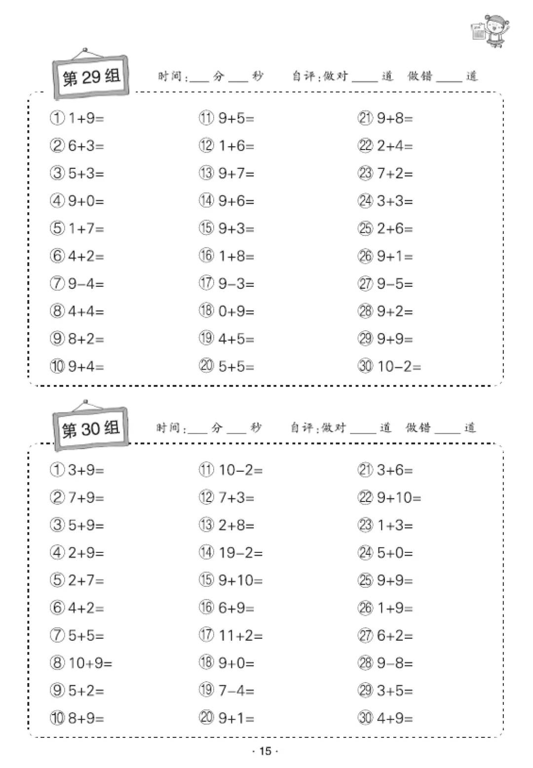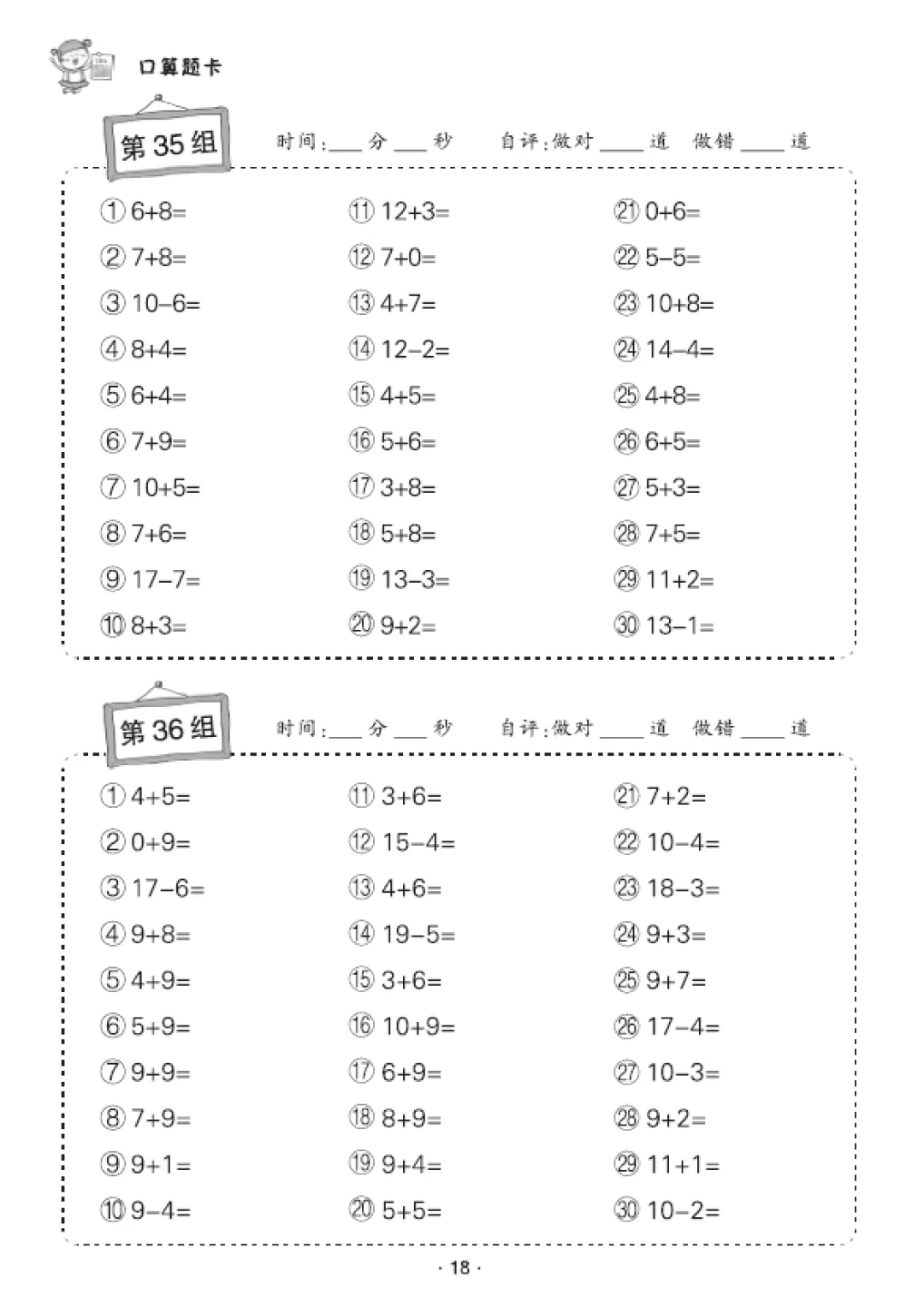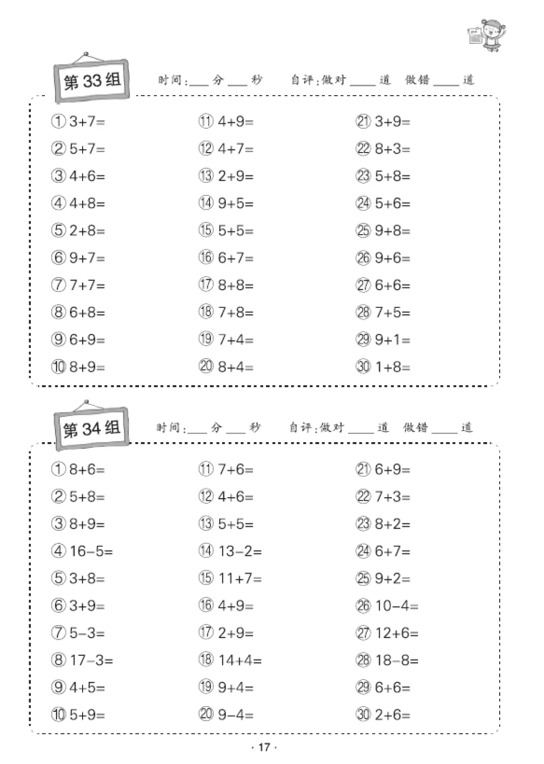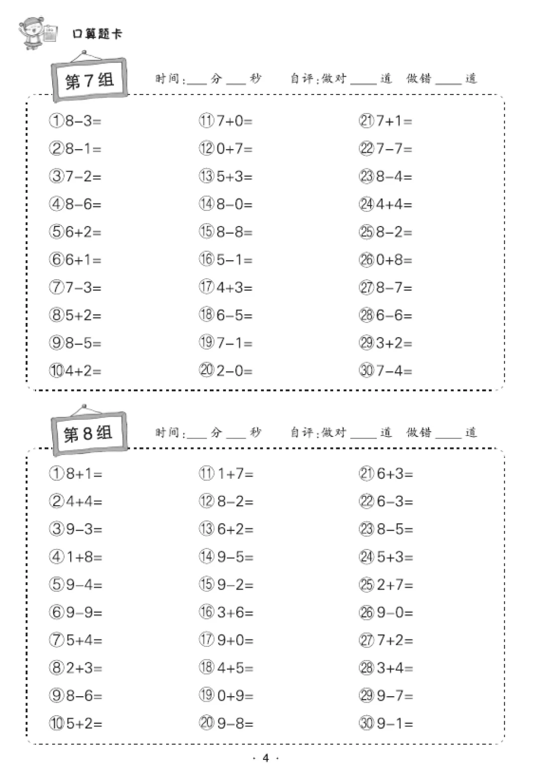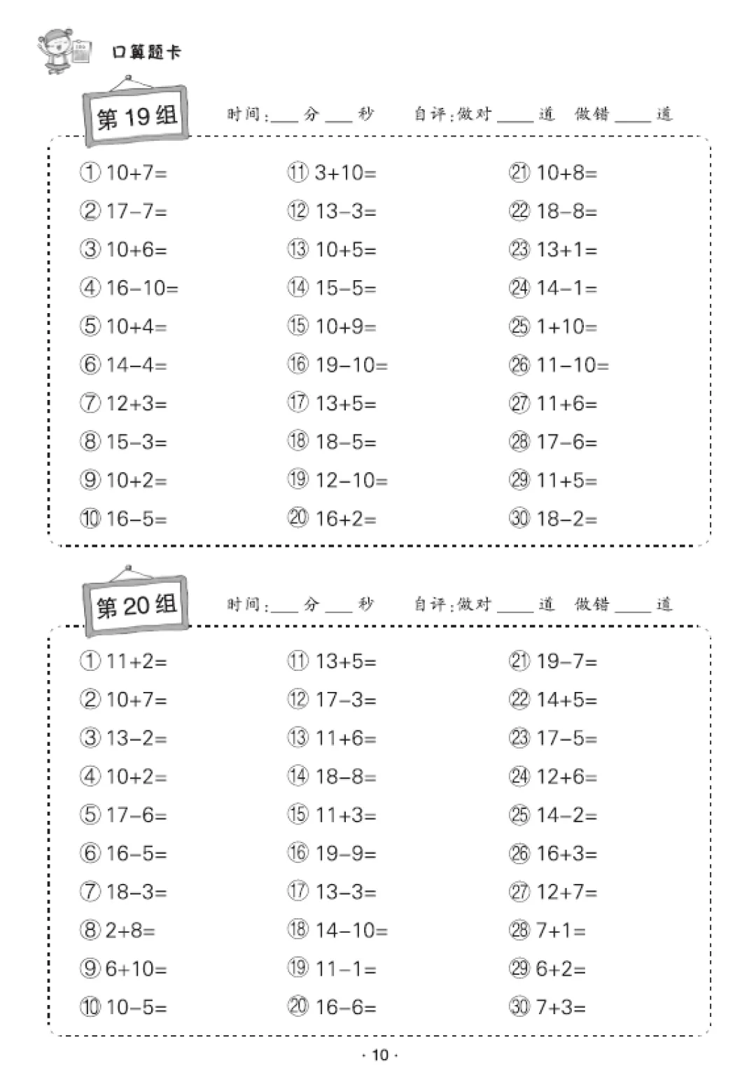 一年级数学口算天天练(30页),电子版可打印