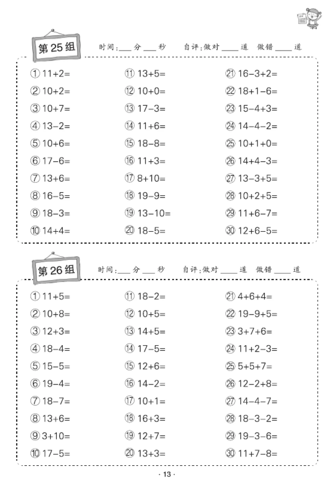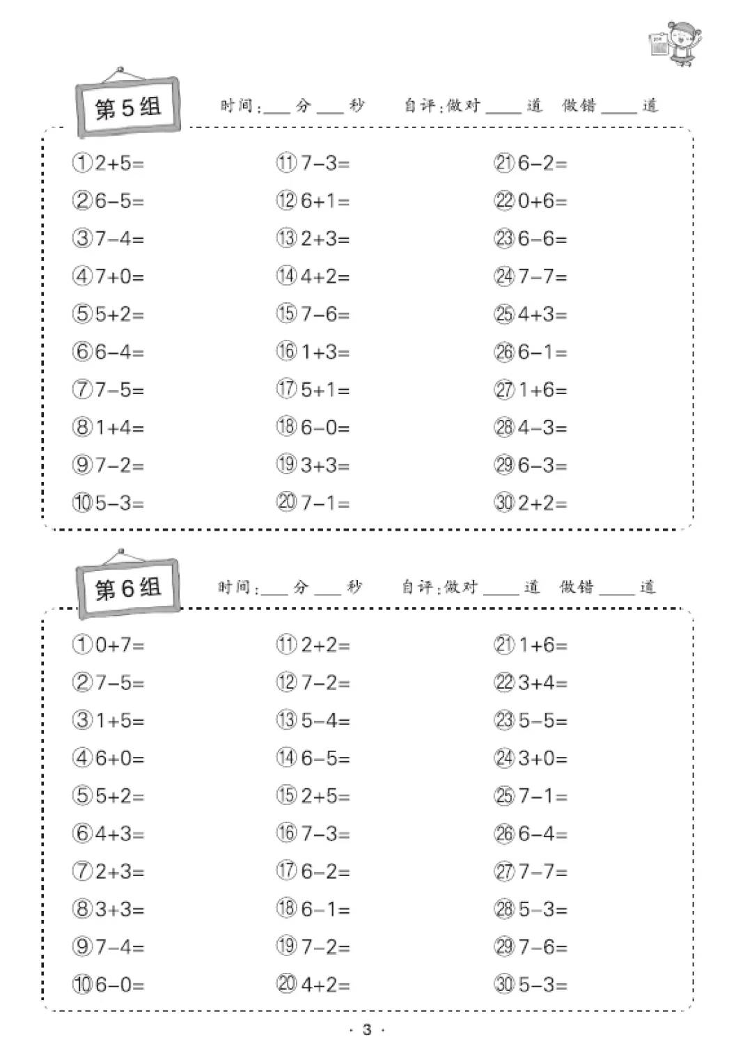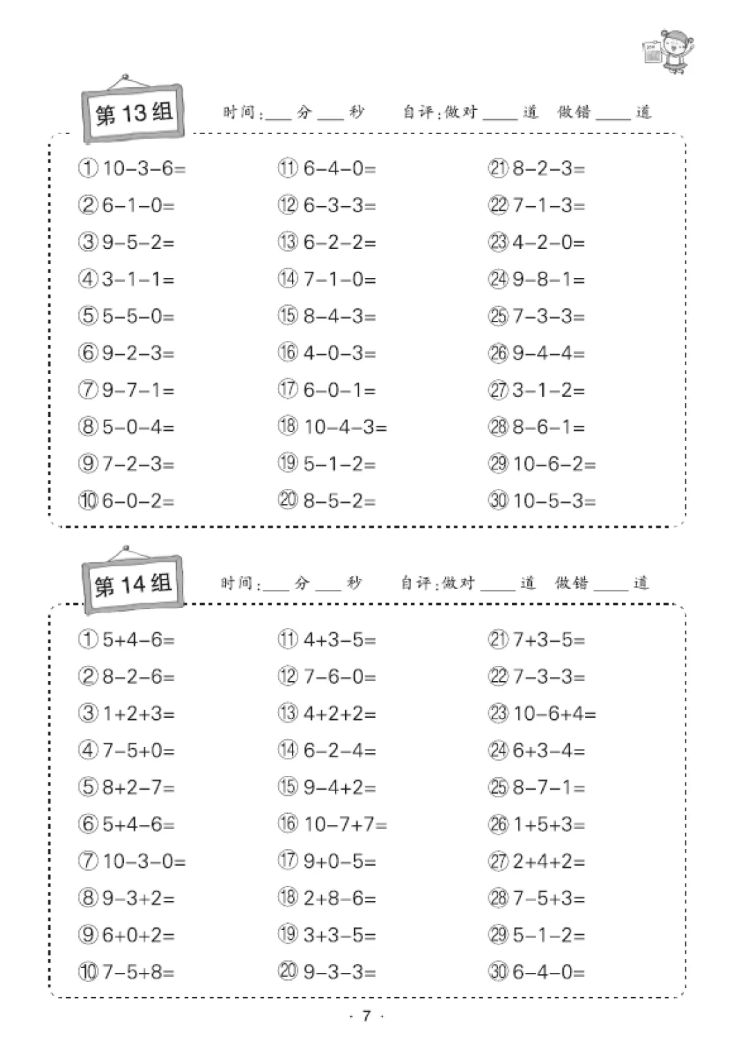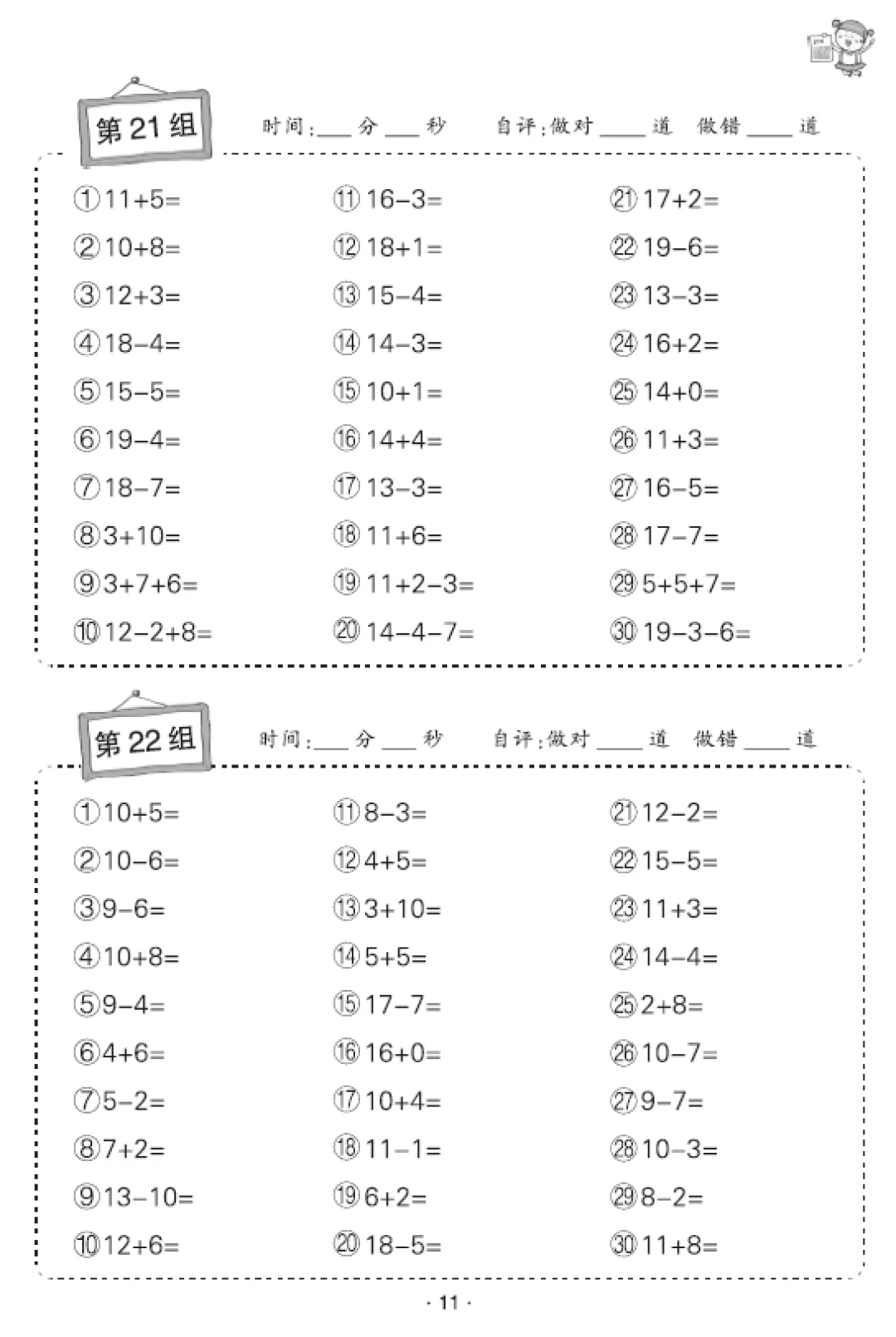 一年级数学口算天天练(30页),电子版可打印