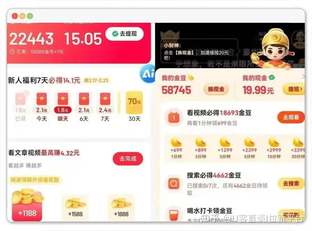 这类广告有个特点:在双十一、618这些大促期间,为了拉用户,奖励会明显增加,基本上跳转APP就有金币拿。