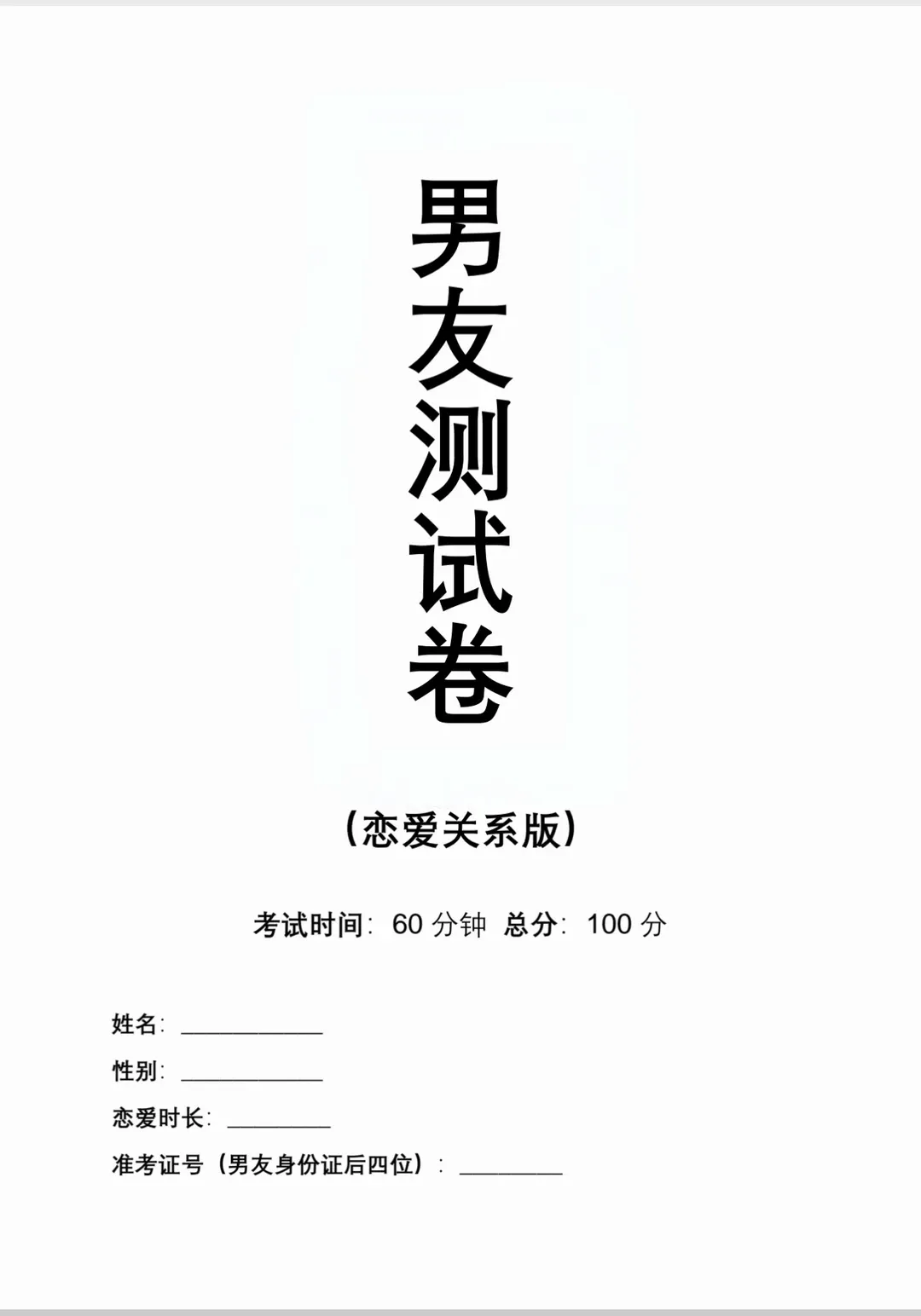 2026男友测试卷合集,电子版自取
