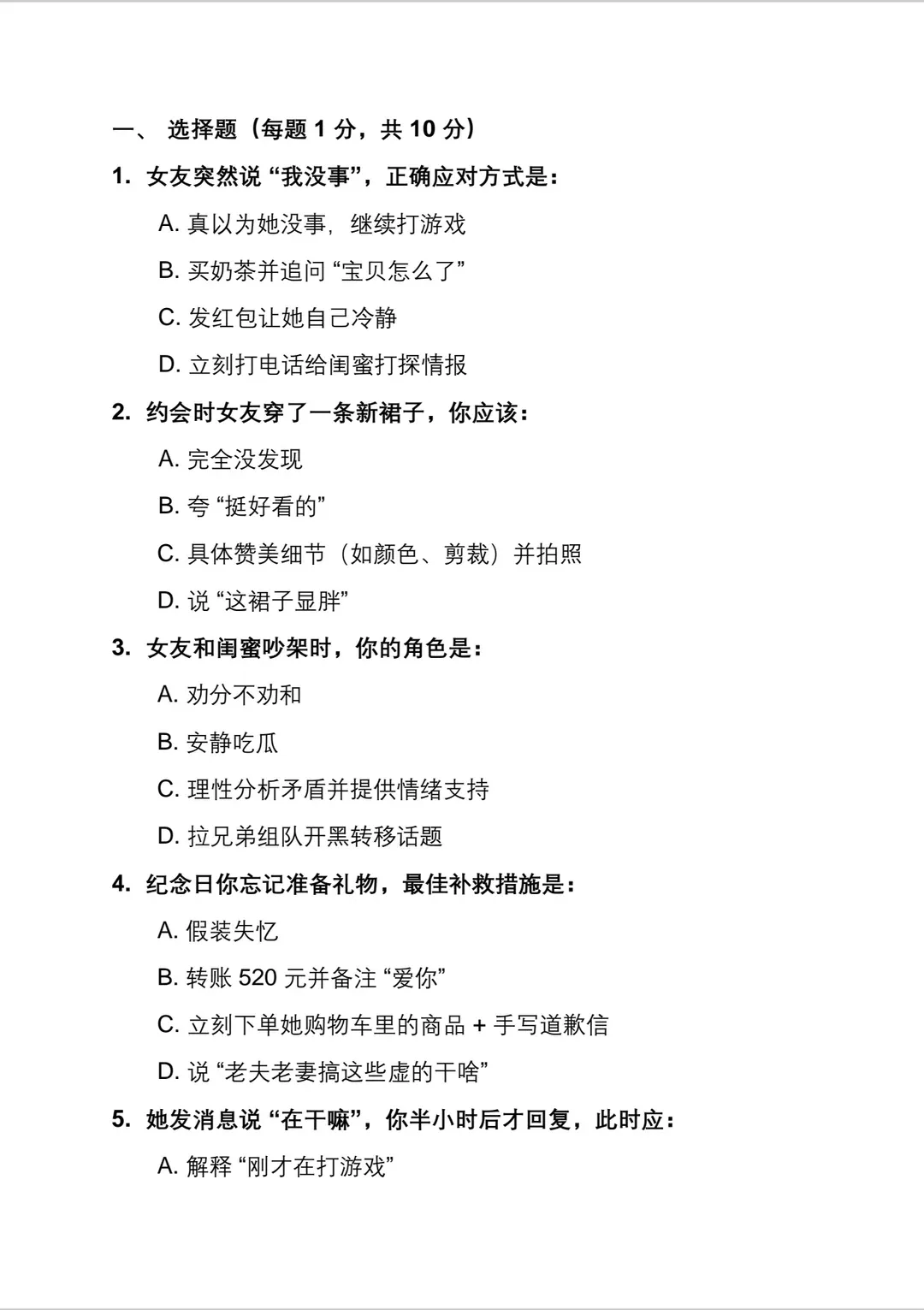 2026男友测试卷 -