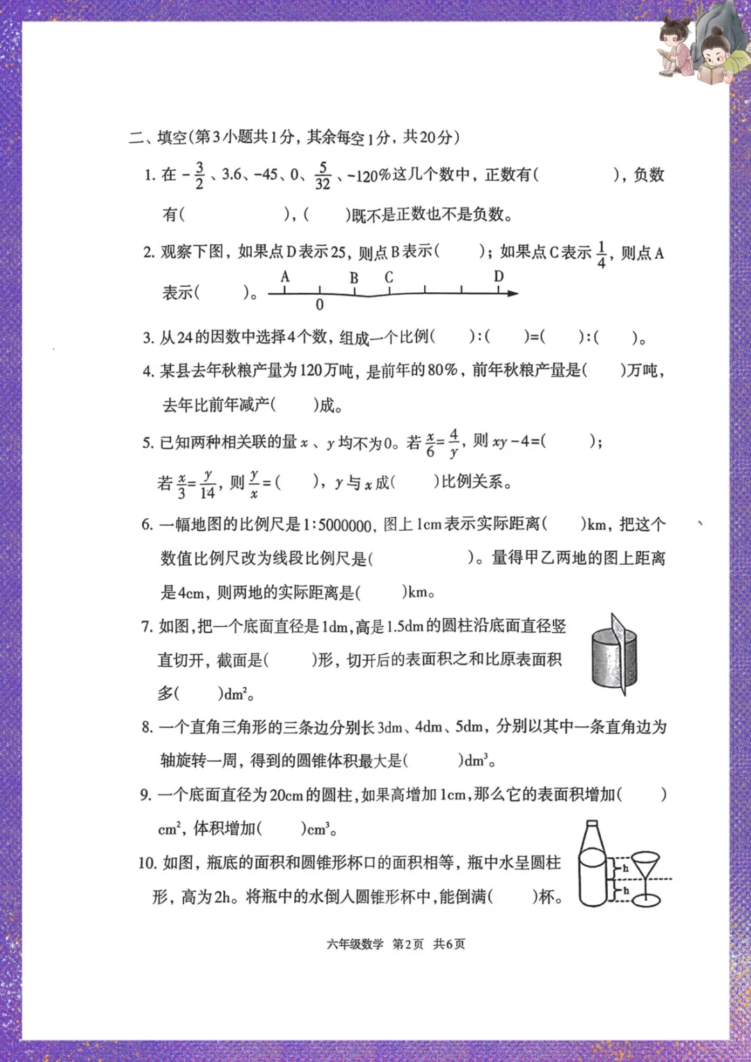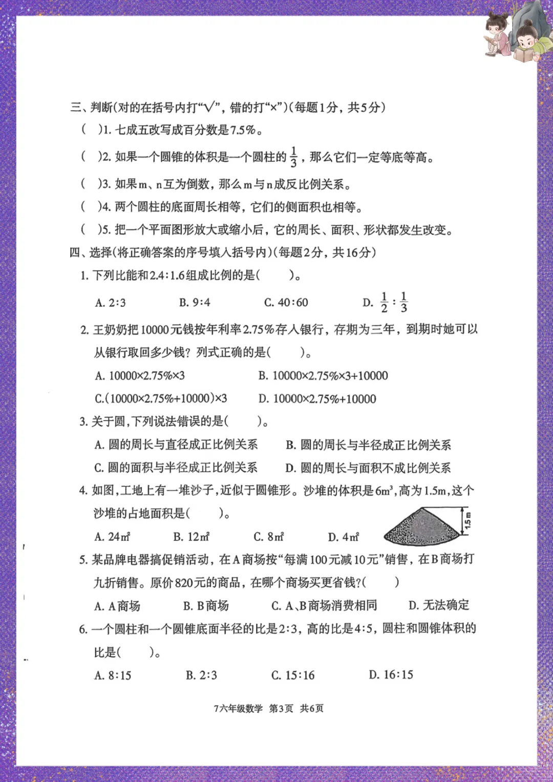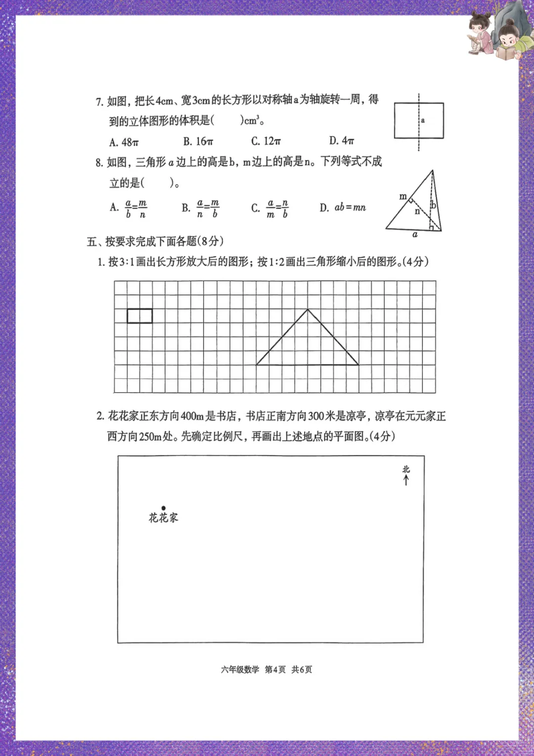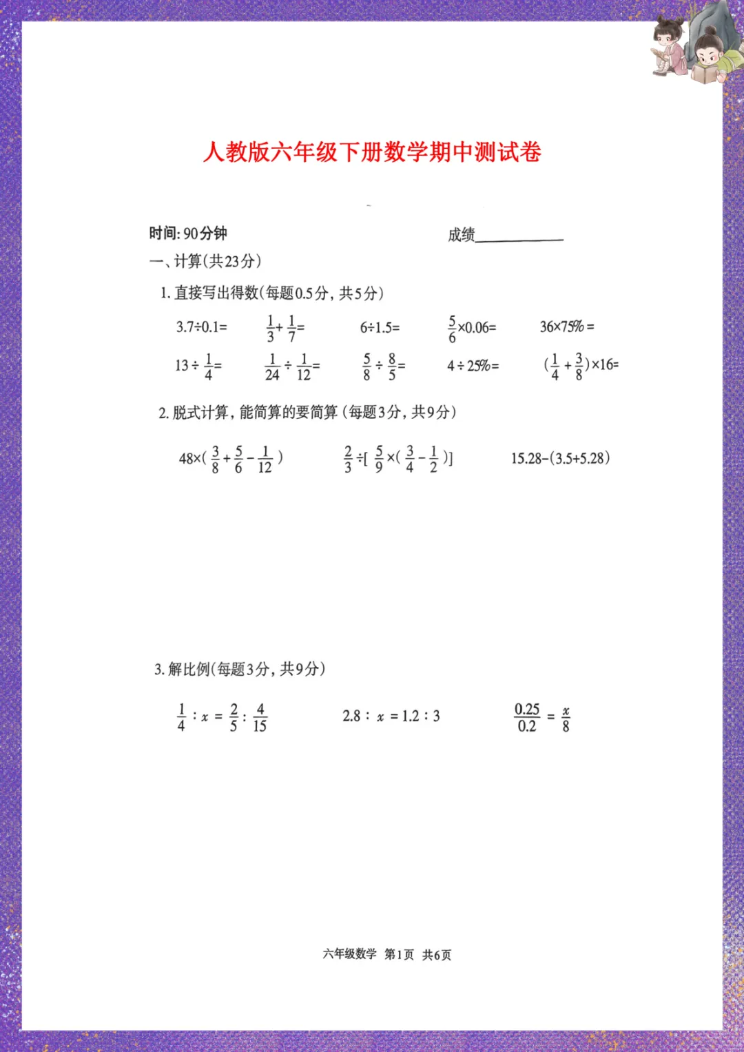 人教版六年级下册数学:期中测试卷 电子版可下载打印