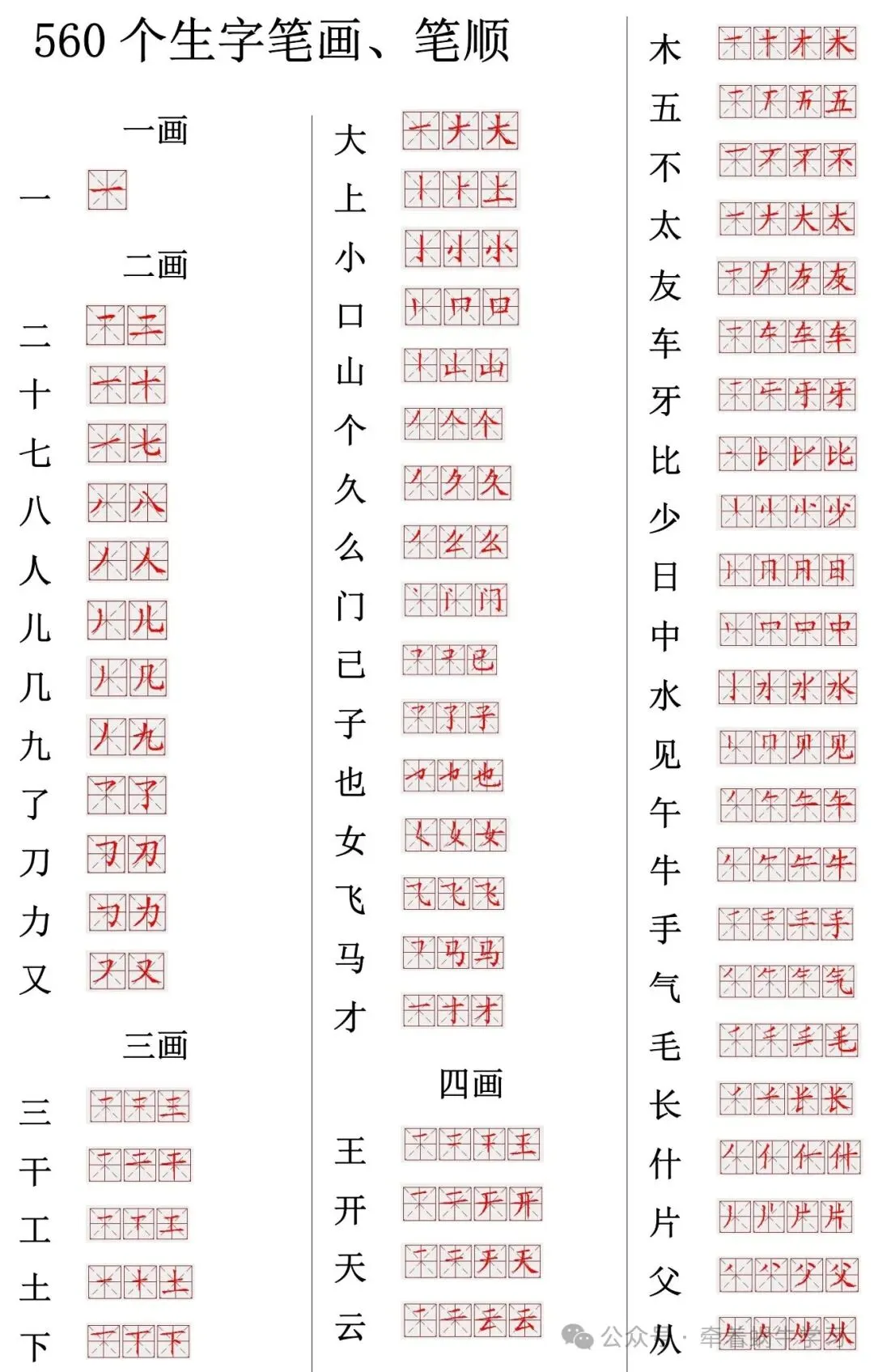 小学语文《560个常用生字笔画+笔顺》|可下载打印