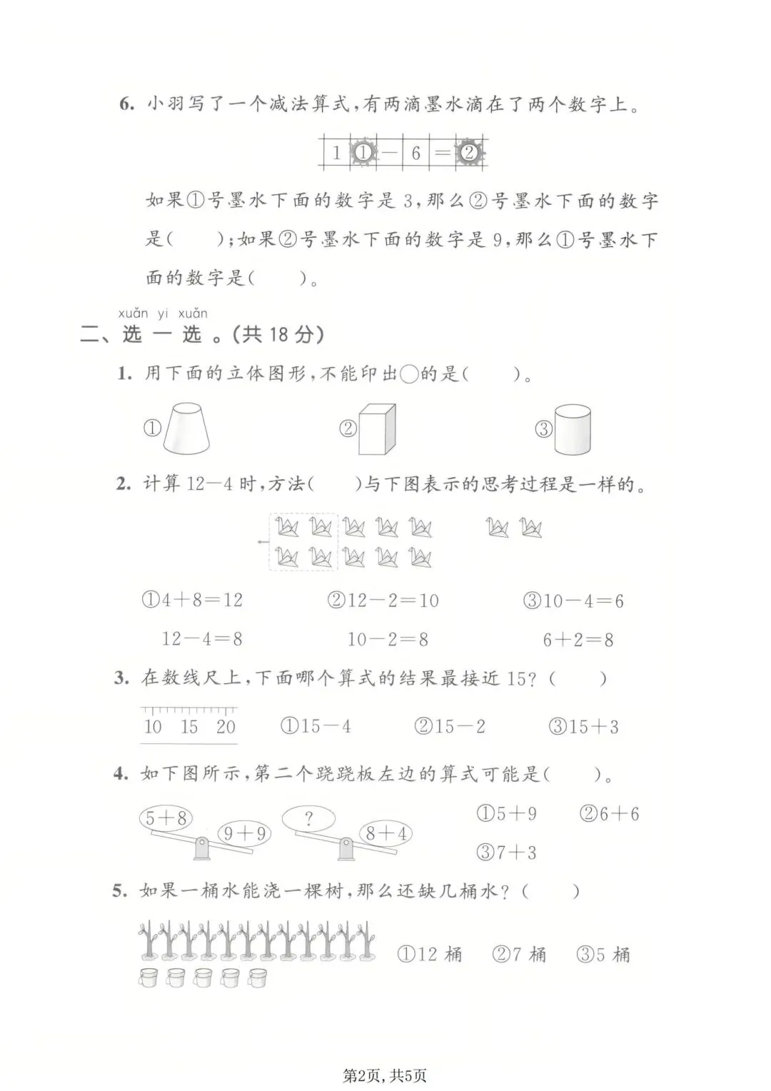 南星伴学营今日给大家分享26年春新版一年级下册数学北师大版期中质量检测卷,完整版含答案,电子版可打印!有需要的家长可以保存打印啦!