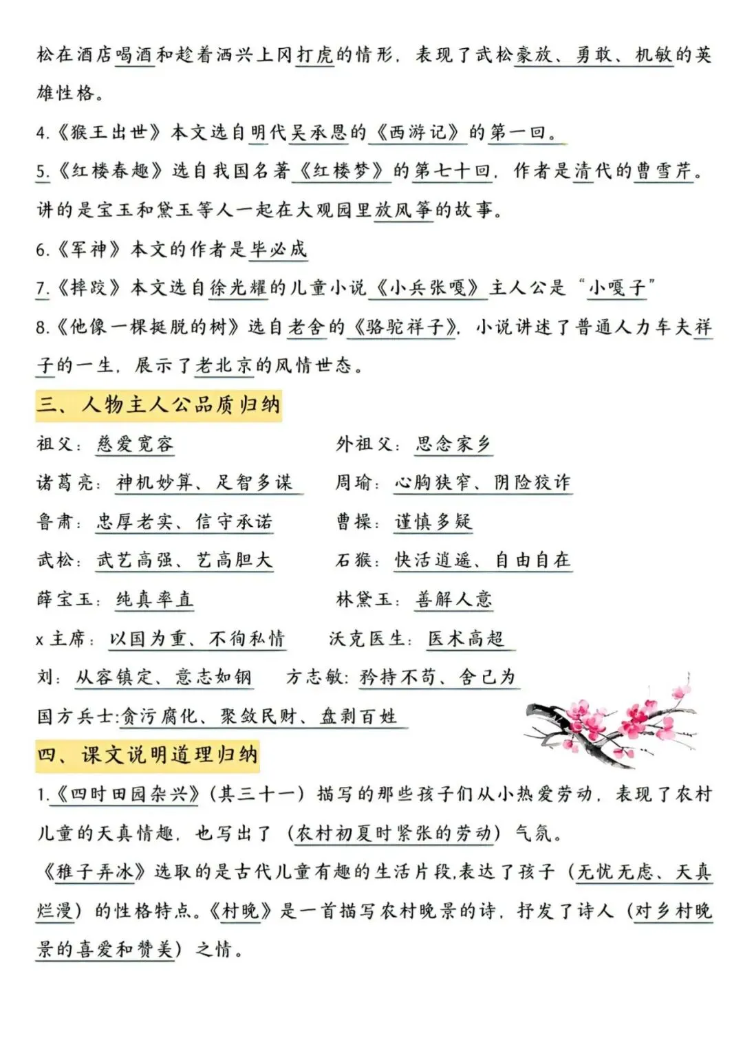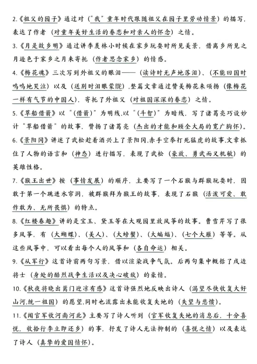 「1~6年级(下)语文 2026春单元知识清单 《部编版》」