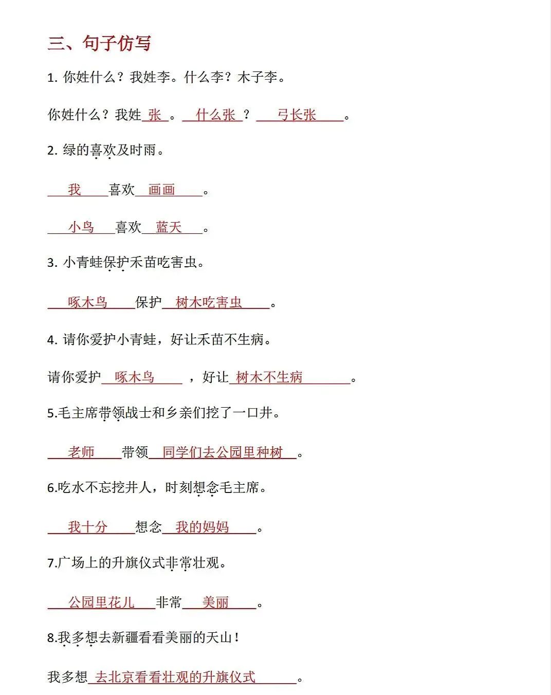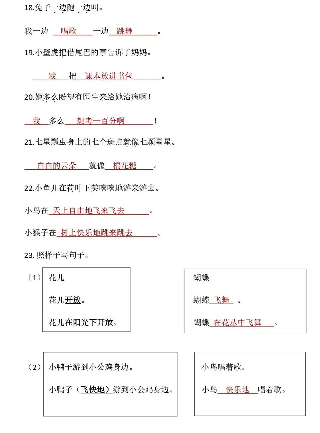 大家好,我是蒂尼江,今天分享的是26春部编版一年级下册语文课内考试重点字词句仿写专项训练,关注我,每天持续分享更多的优质学习资料。