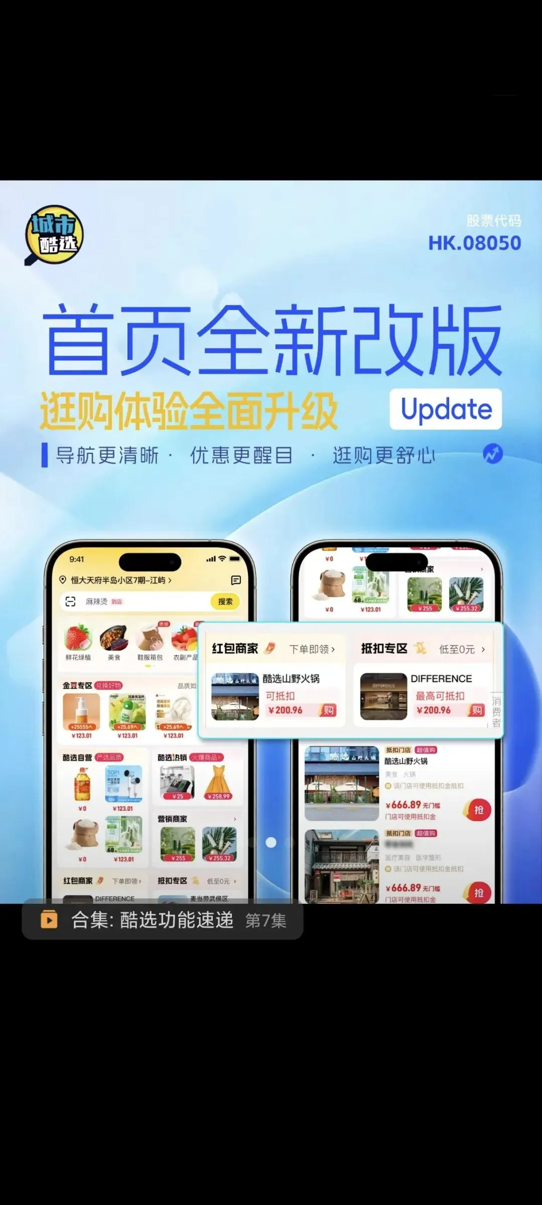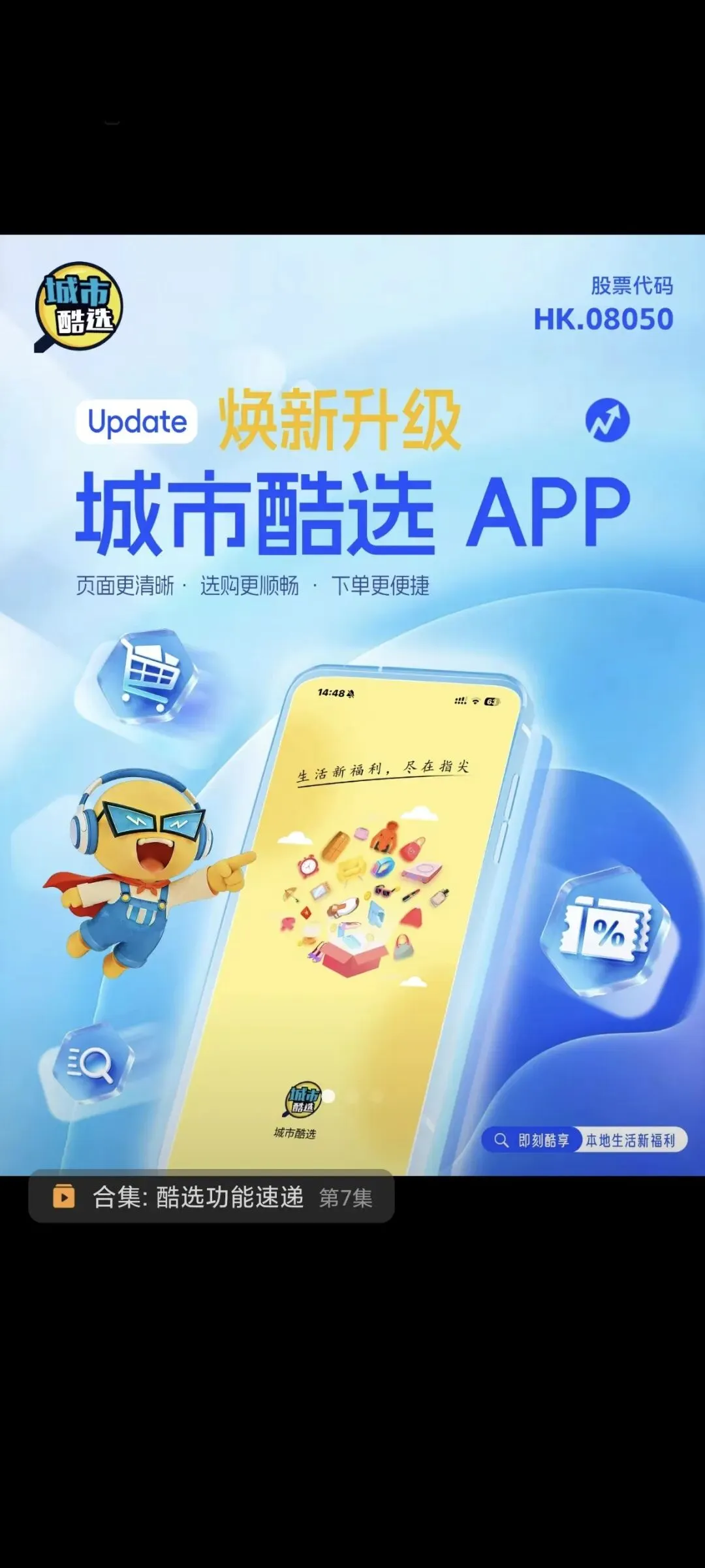 这一次,视觉重塑,体验进阶——页面更清晰、选购更顺畅、下单更便捷。让你在城市酷选的每一次逛购,都成为一种享受。
