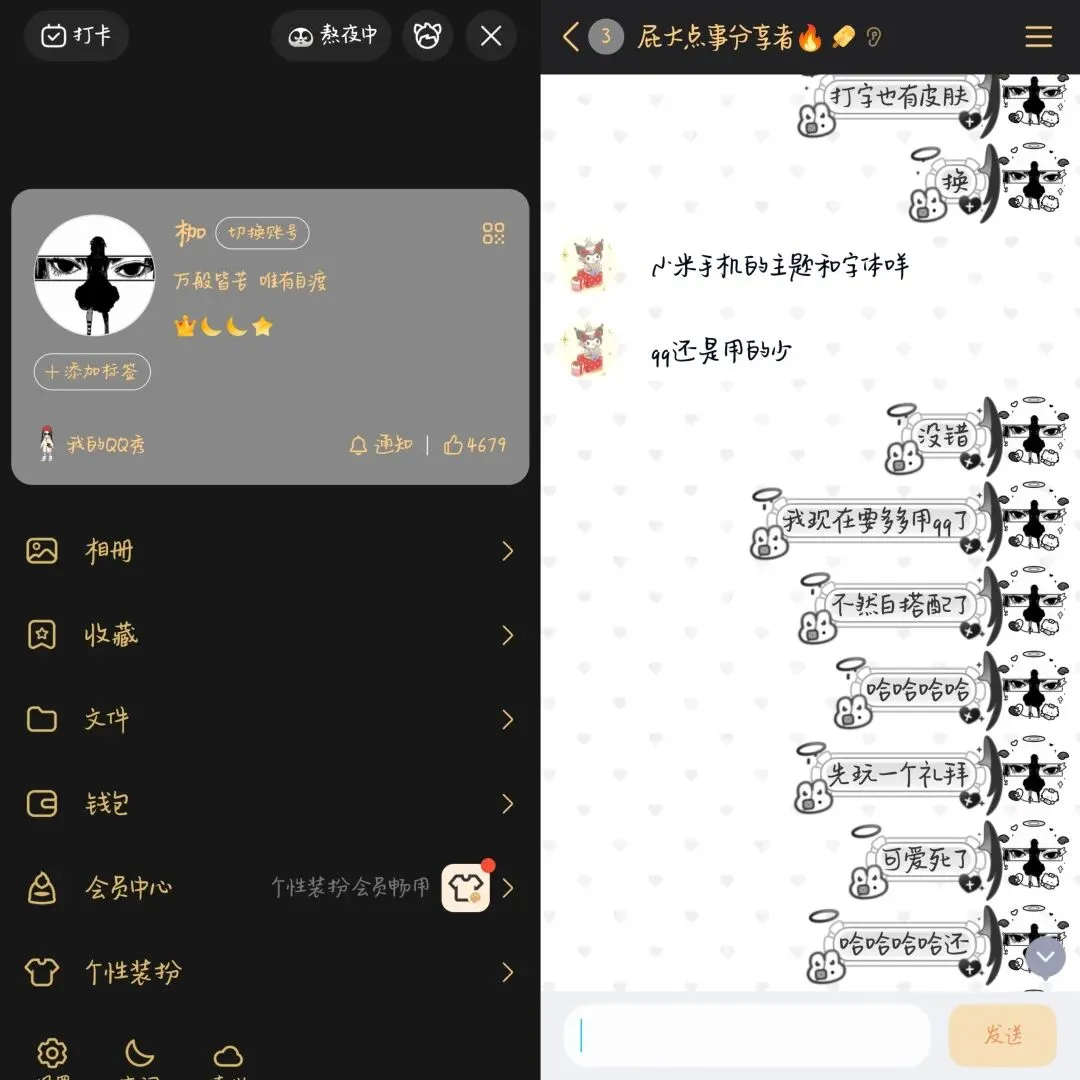 后来才发现,气泡、动态挂件、甚至输入法音效都能一起换。
