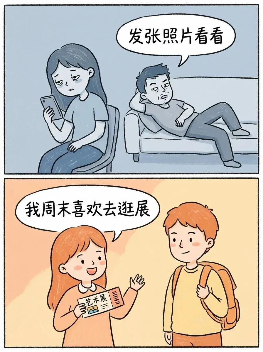 别再发“在干嘛”或者发个干瘪的表情包了,直接抛出一个带有你个人筛选标准的具体问题。比如:“我周末喜欢去逛展,你平时休息都干嘛?