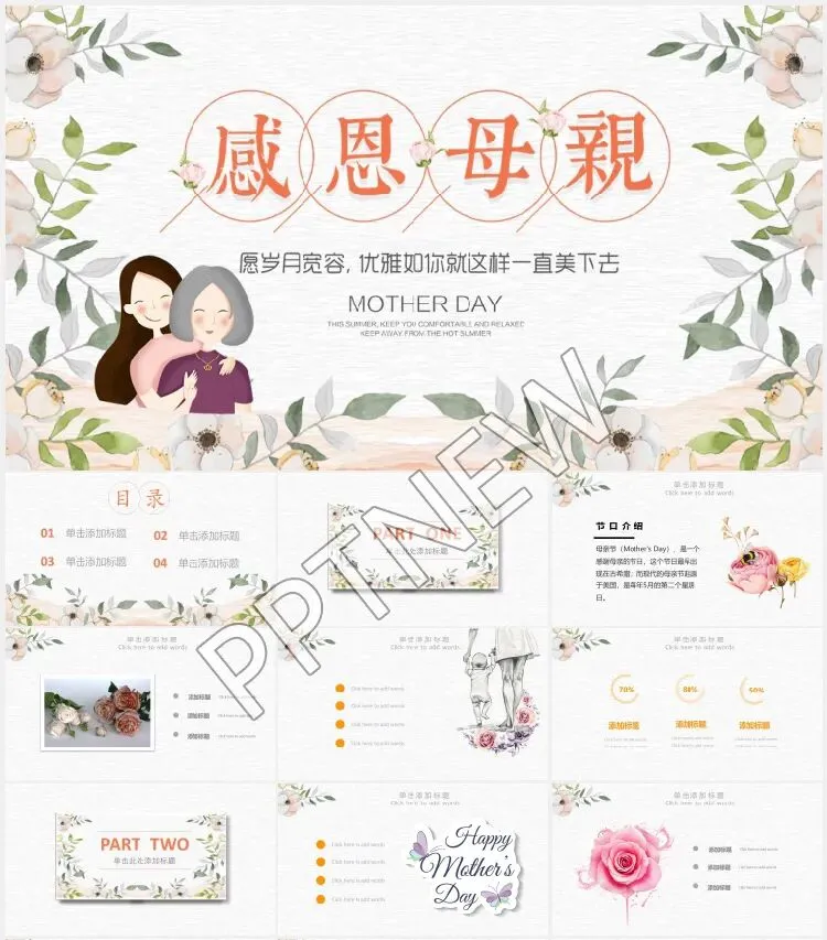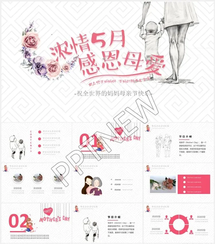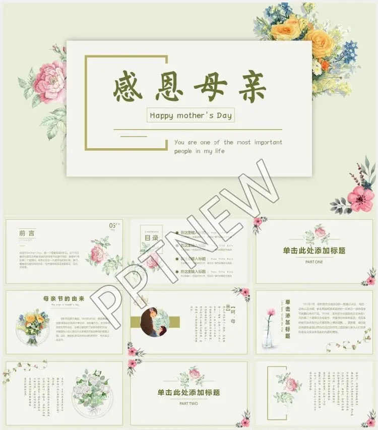 感恩母亲节PPT模板免费下载 母亲节,是一个感谢母亲的节日。现代的母亲节起源于美国,是每年5月的第二个星期日。母亲们在这一天通常会收到礼物,康乃馨被视为献给母亲的花,而中国的母亲花是萱草花,又叫忘忧草。 本份劳动节PPT模板开放领取,直接回复文章结尾的编号就可以了。 这份资料都包含什么? 以上就是本期精选《母亲节PPT模板》部分福利资源展示,文件过多,就不一一列举展示,你领取到的内容将包含全部内容。 如何领取本期资源 第1步:点亮右下角的 “赞” + “在看” + “留言” 第2步:点击下方 [精品PPT模板库] 关注,关注后发送关键词 母亲节 第3步:资源免费领取,如果觉得不错记得将本文推荐给你的朋友