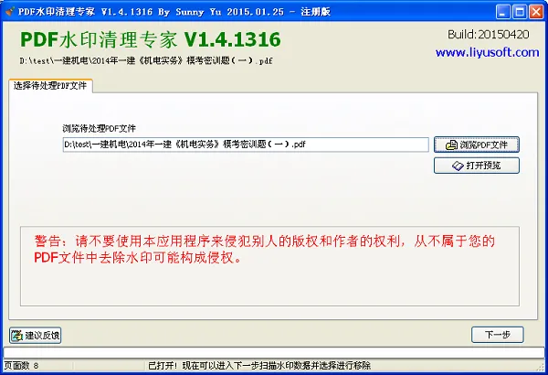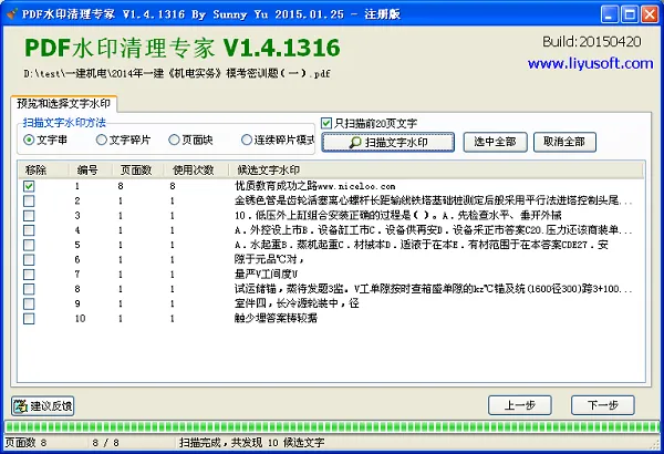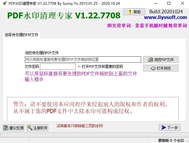 PDF水印清理专家支持移除页眉、页脚、背景文字水印、图片PDF水印及文件内链接,向导式界面操作简单,处理后PDF结构保持不变。